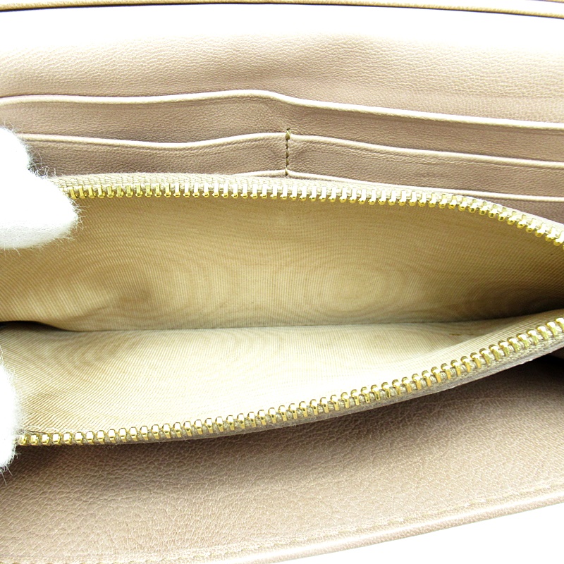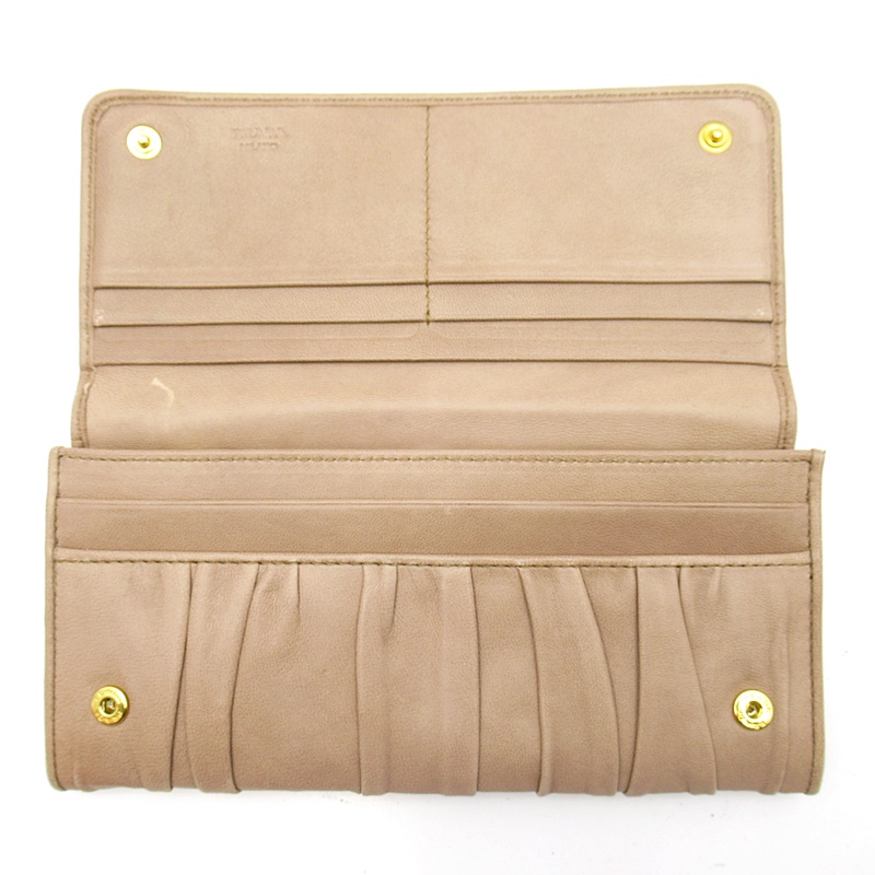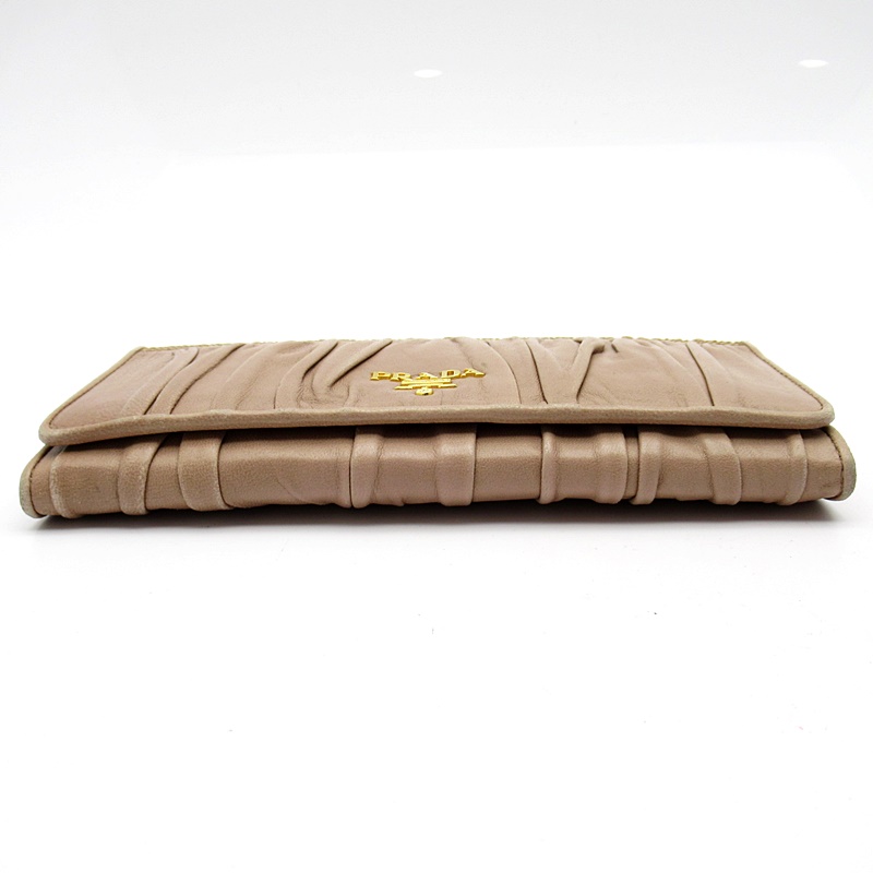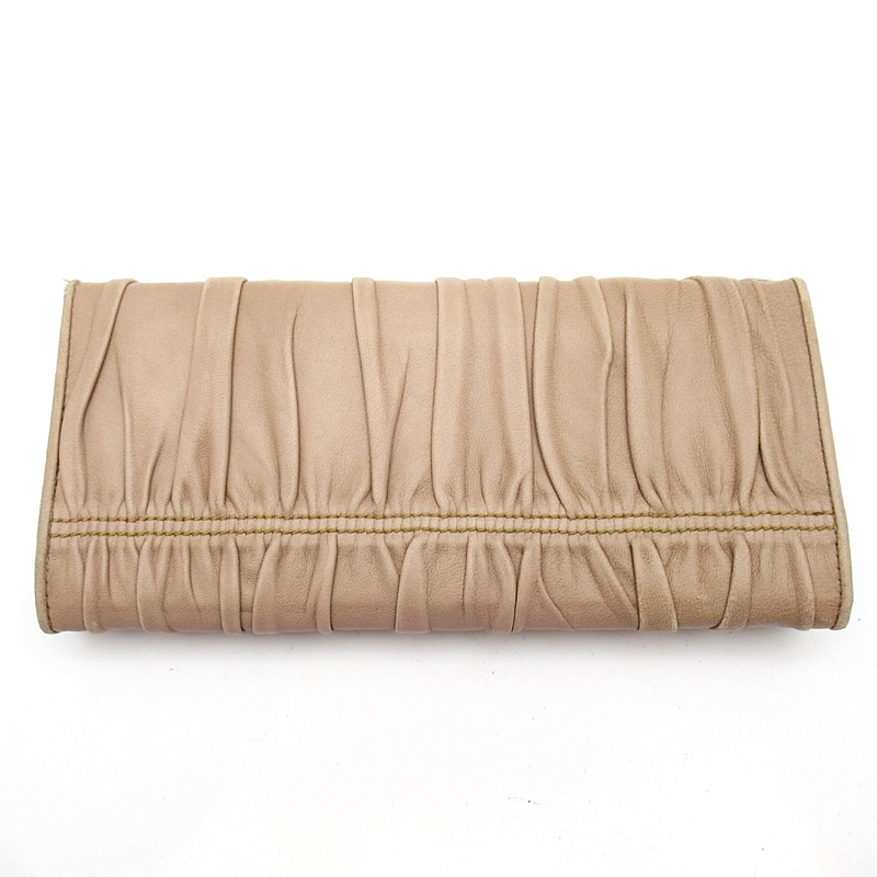 USED品。フェミニンなギャザー入りデザイン。カード入れ、ポケット多数あり、デザインのみならず機能的も抜群です。