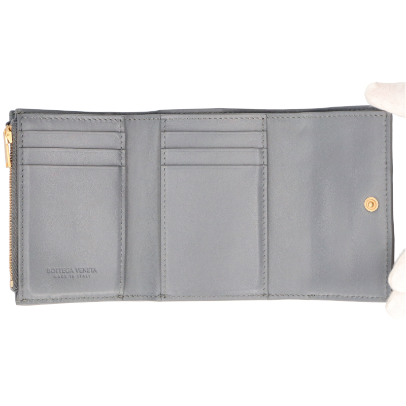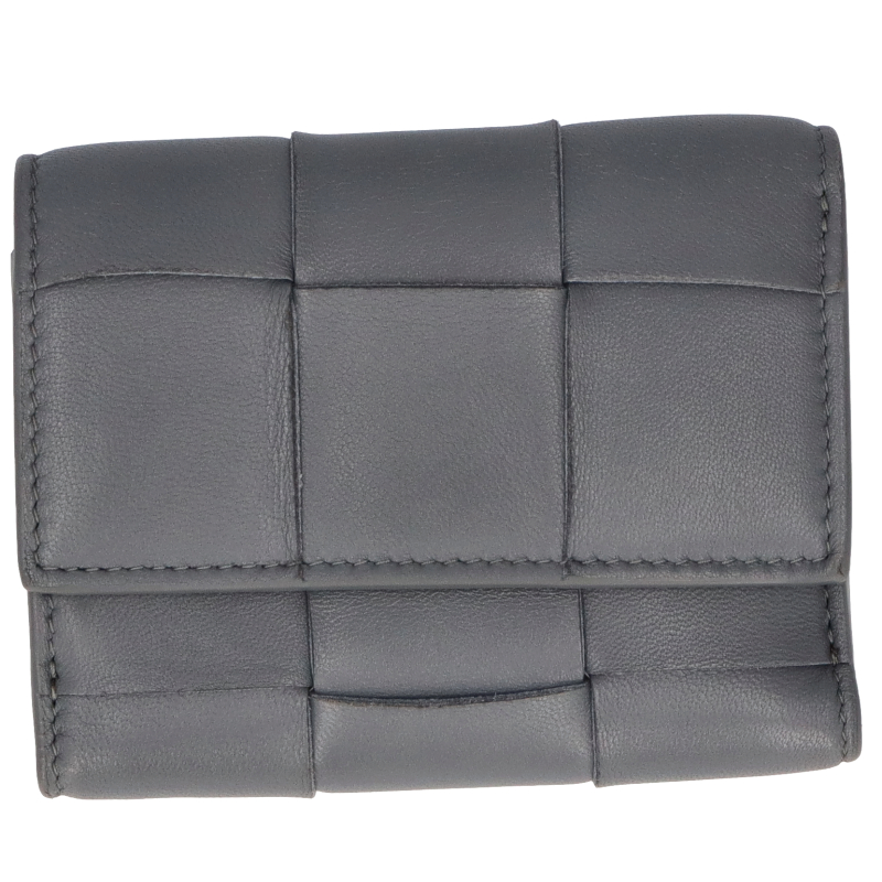 USED品。ボッテガヴェネタの三つ折り財布です。レザーが丁寧に編み込まれたイントレチャートが特徴的。シンプルな仕上がりなので長くご愛用いただけます。