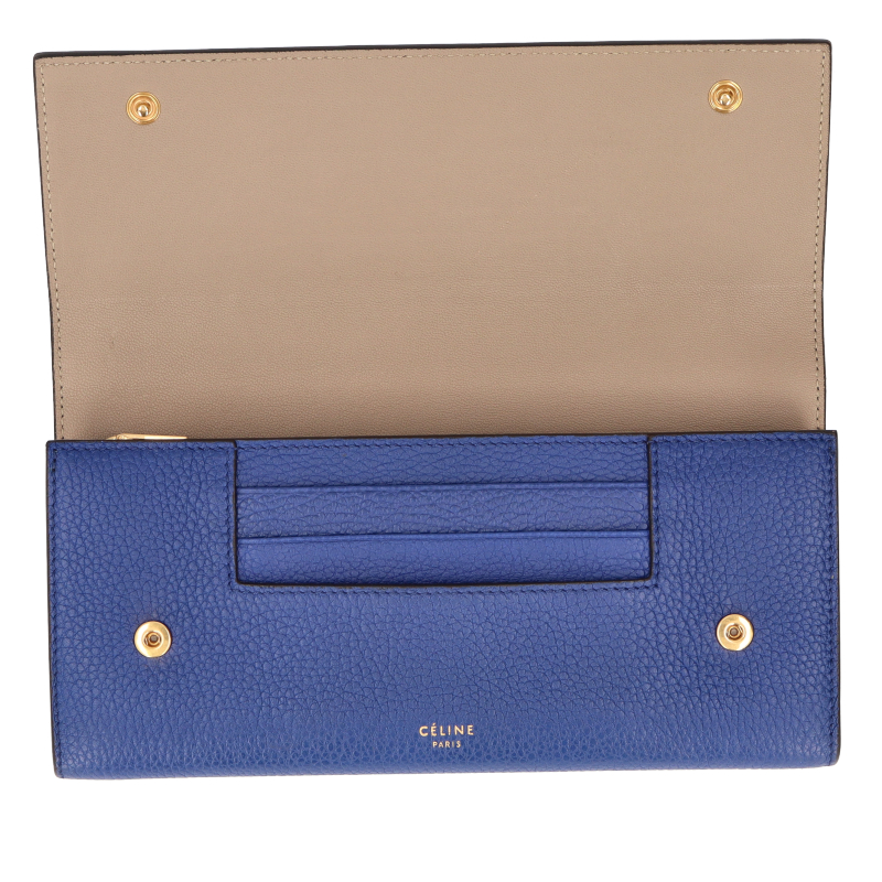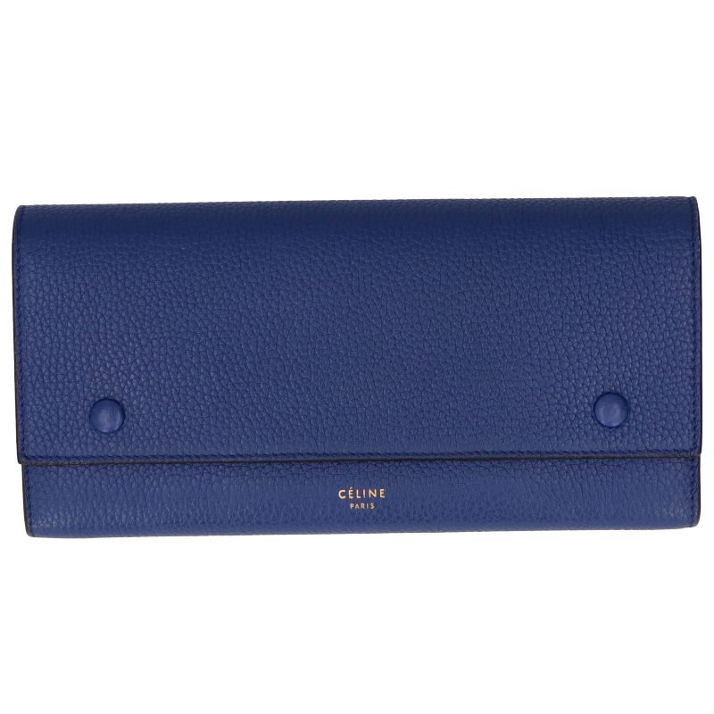 USED品。Wスナップが特徴的なセリーヌの長財布「ラージ フラップ マルチファンクション」。背面にもポケットを装備した収納力抜群のお財布です。