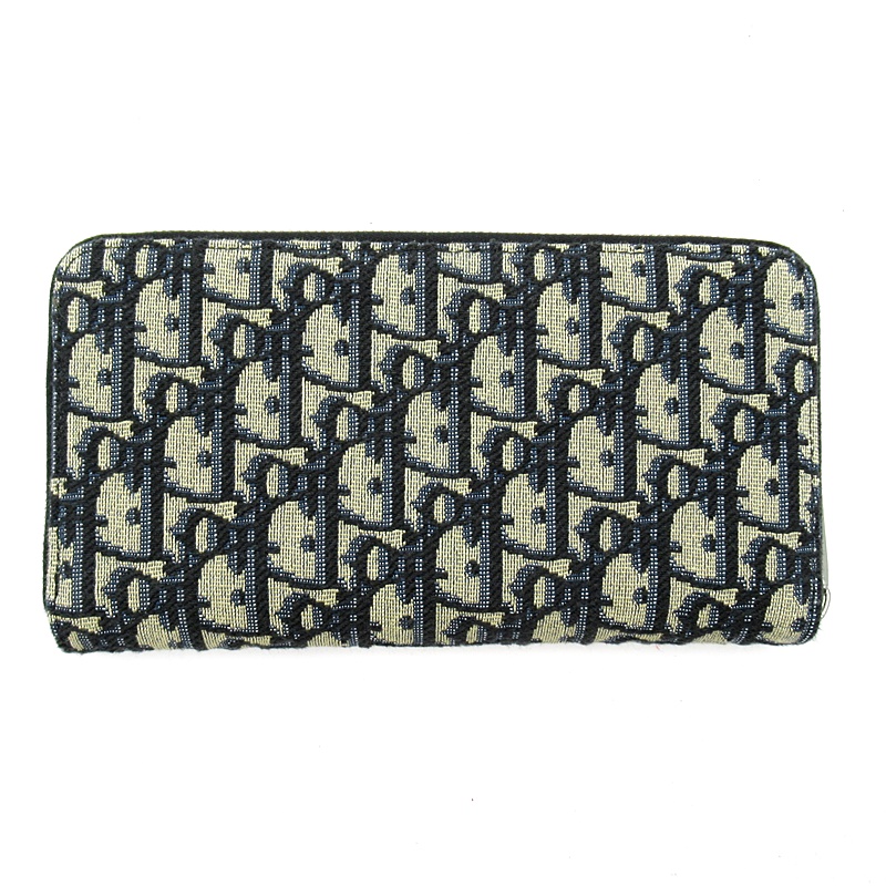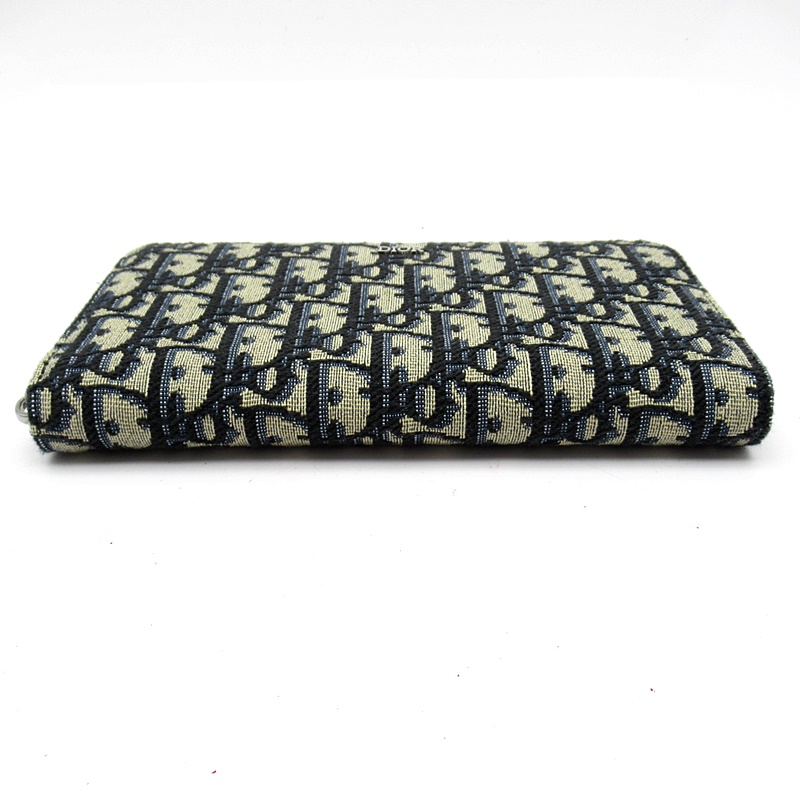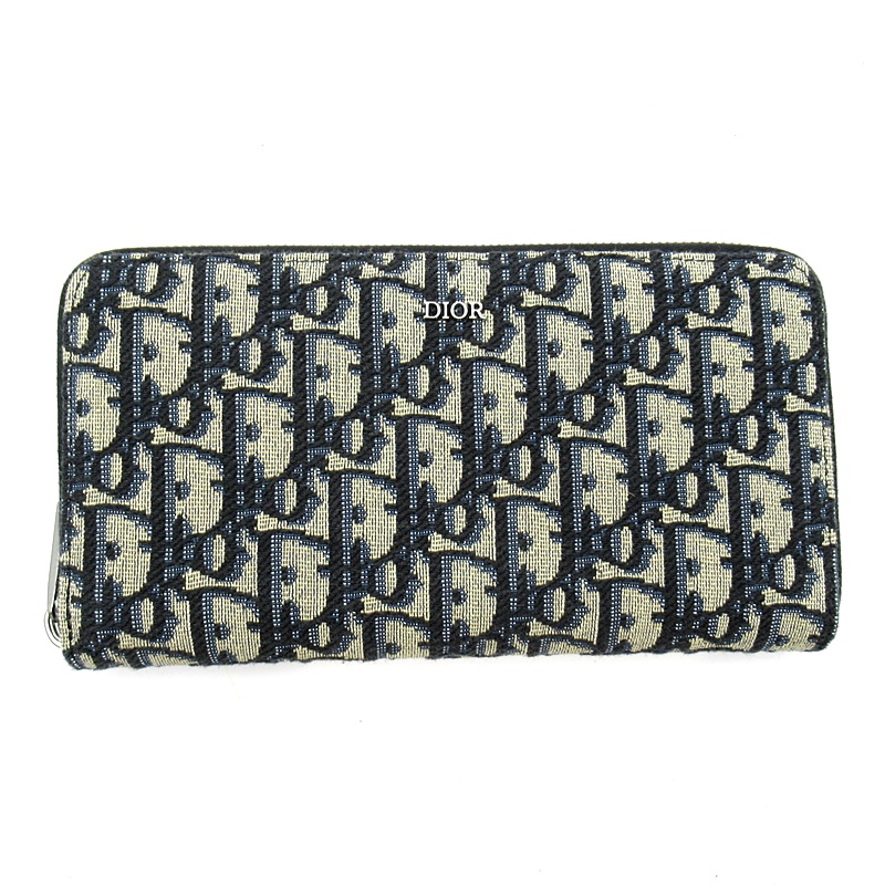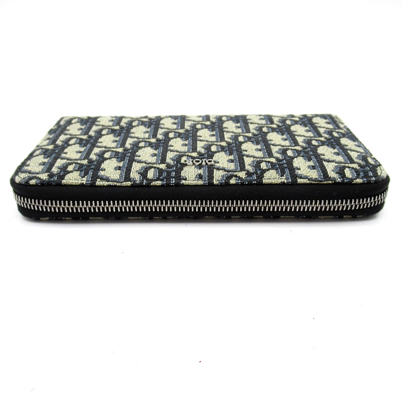 USED品。洗練されたデザインと実用性を兼ね備えたロングジップウォレット。ブラックの「ディオール オブリーク」ジャカードで仕立て、ルテニウムコーティングの真鍮ジップクロージャーと、ブラックのスムースカーフスキンのライニングで仕上げました。