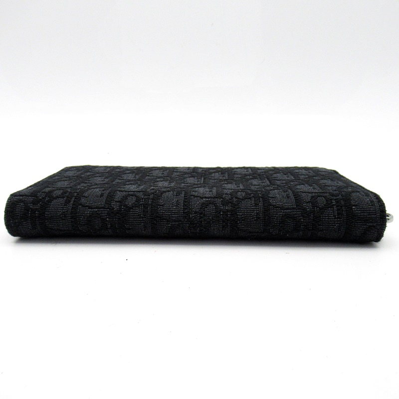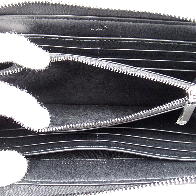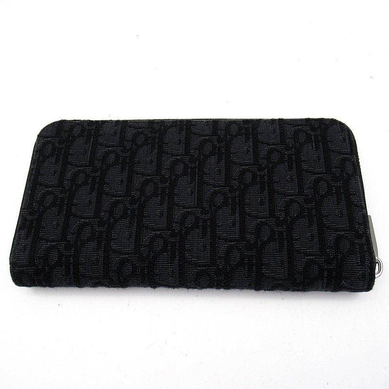 USED品。洗練されたデザインと実用性を兼ね備えたロングジップウォレット。ブラックの「ディオール オブリーク」ジャカードで仕立て、ルテニウムコーティングの真鍮ジップクロージャーと、ブラックのスムースカーフスキンのライニングで仕上げました。