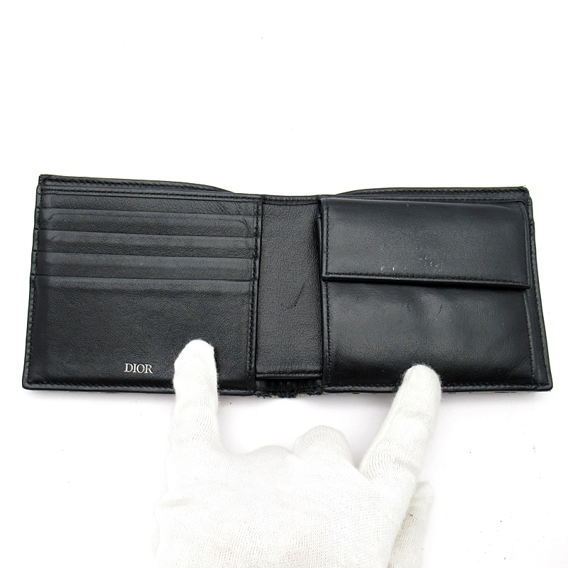 USED品。洗練されたデザインが魅力のコインケース付きウォレット。ベージュ&ブラックの「ディオール オブリーク」ジャカードを使用し、ルテニウムコーティングを施した真鍮製Diorシグネチャーをフロントにあしらいました。ポケットやバッグの中にすっきりと収まるコインケース付きウォレットです。