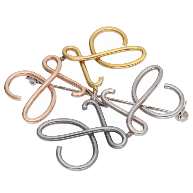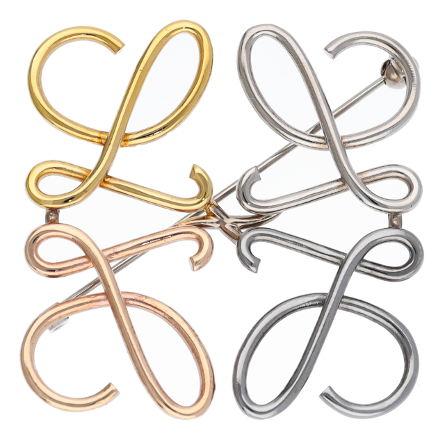 USED品。ロエベのアナグラムをかたどったブローチ。ゴールド、ローズゴールド、パラジウム、ロジウム仕上げ。