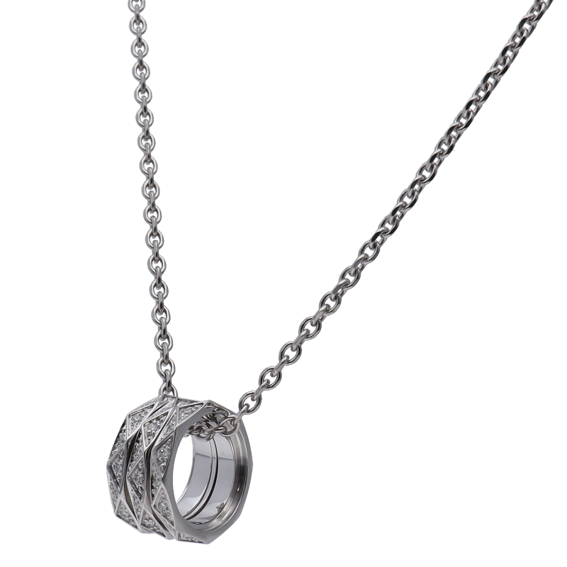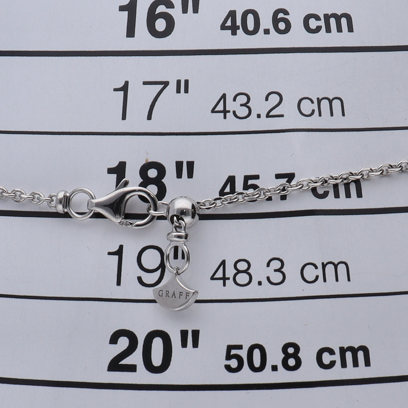 USED品。ホワイトゴールド製。ペンダントトップの多面的なカットは、グラフの象徴であるダイヤモンドのファセットを表しています。ザ ローレンス グラフ シグネチャー コレクションは、滑らか且つ重ねつけできるバングルやスタイリッシュで、モチーフが回転する遊び心あふれるペンダントです。