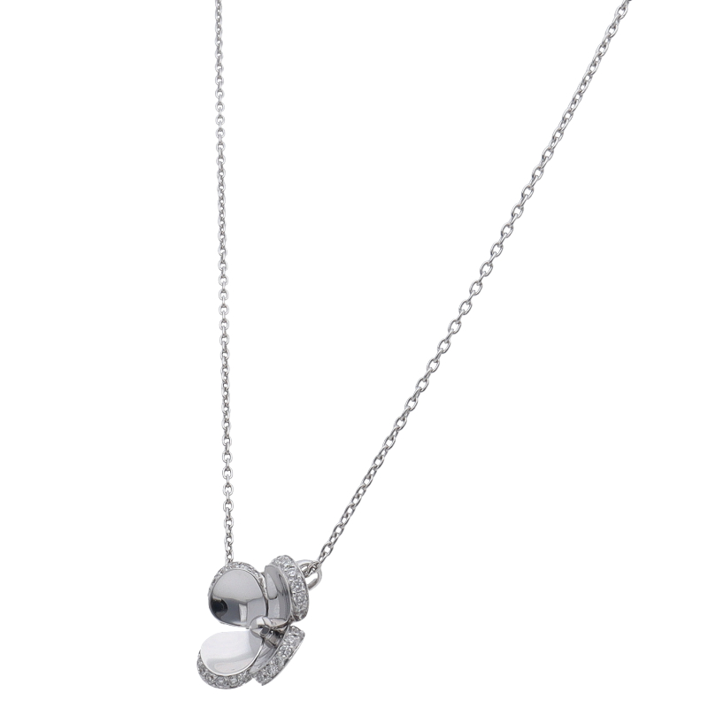USED品。ホワイトゴールド製。美しく輝いたダイヤモンドが施された上品なネックレスです。