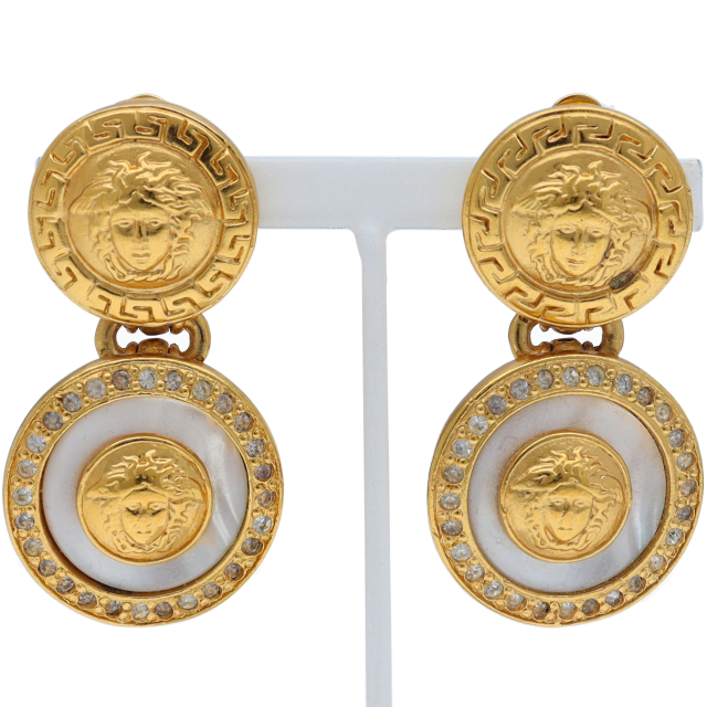 USED品。ヴェルサーチのシンボルでもあるメデューサが配置された高級感のあるイヤリングです。