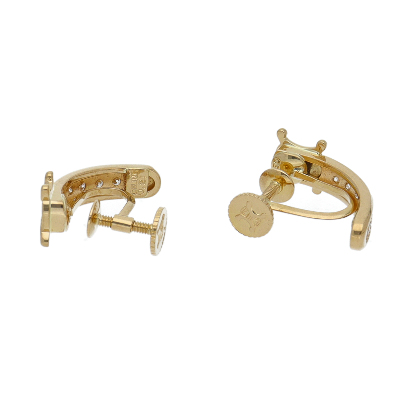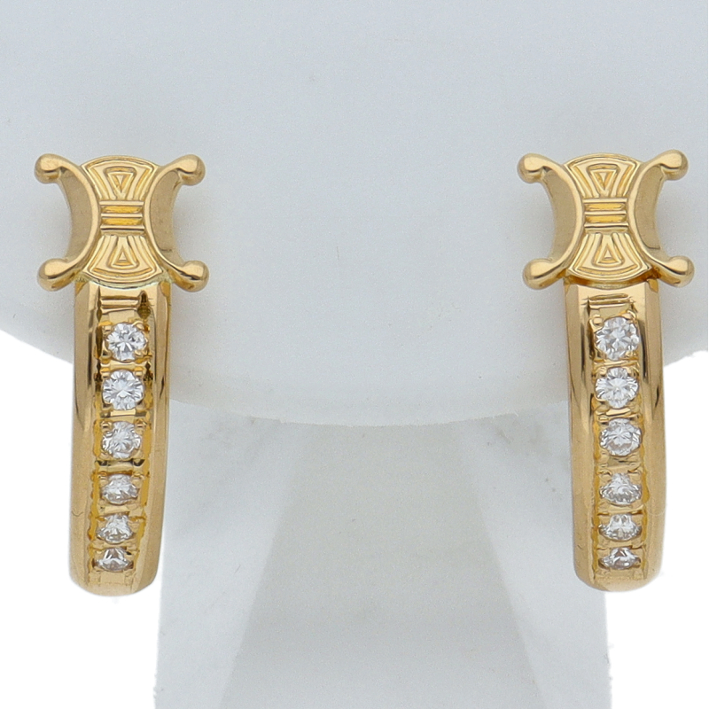 USED品。イエローゴールド製。ダイヤモンドのきらめきが華やかなデザインの為、パーティーシーンなどで活躍するイヤリングです。