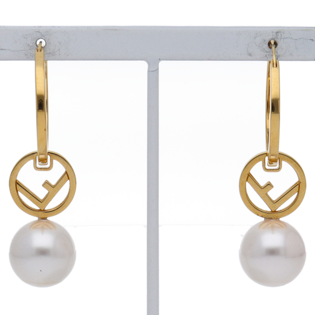 USED品。エフ イズ フェンディのモチーフをあしらったフープピアス。フェイクパールが華やかな印象を与えます。