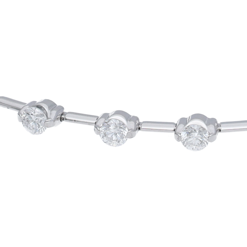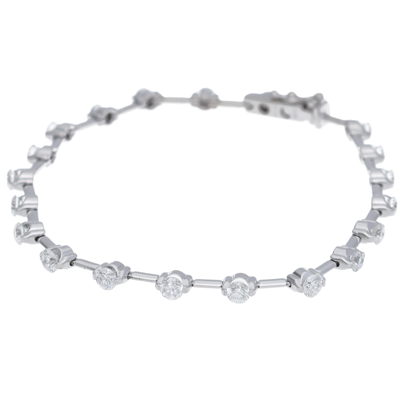 USED品。ホワイトゴールド製。全体的にシャープな印象のブレスレットです。繊細に配置されたダイヤが手元で綺麗に輝きます。