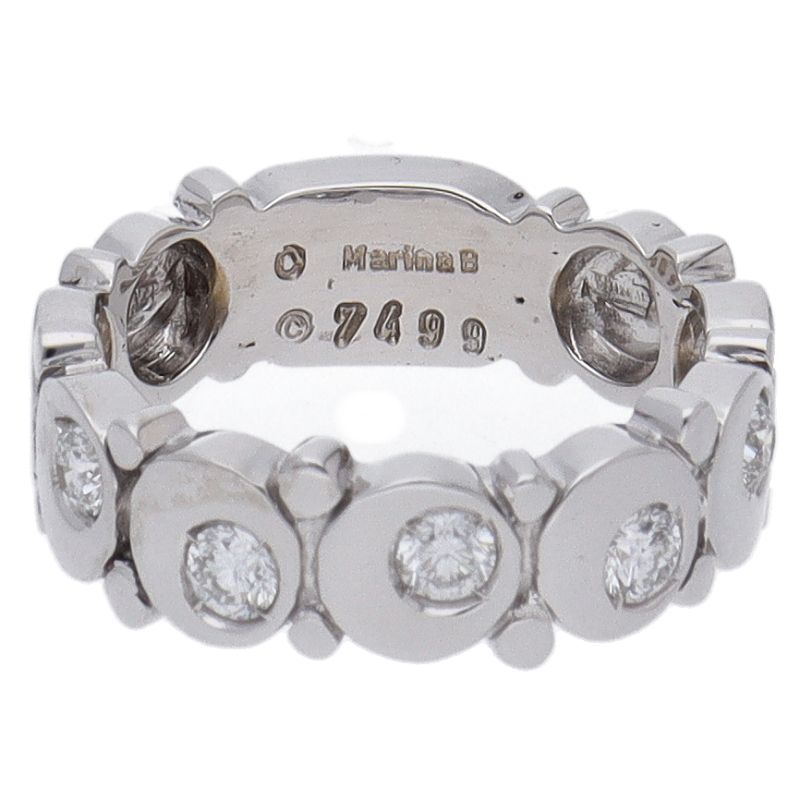 USED品。ホワイトゴールド製。1979年、コンスタンティン・ブルガリの娘マリナによってジュネーヴに創立されたジュエリー・メゾン。デザイン性のあるリングです。デイリーユースでお楽しみ頂けます。