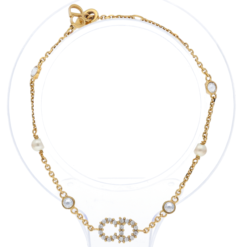 USED品。ディオールのロゴにラインストーンが施されたブランドアピール抜群のブレスレット。普段使いからオススメです。