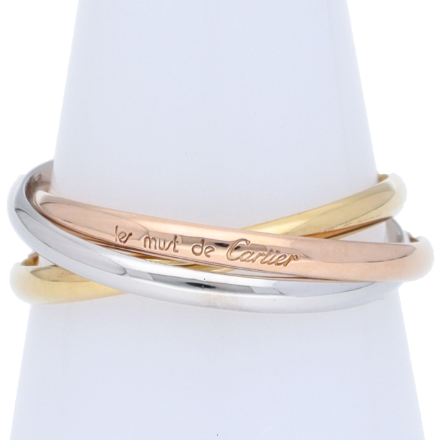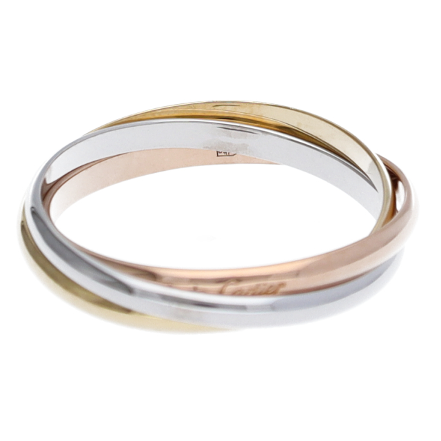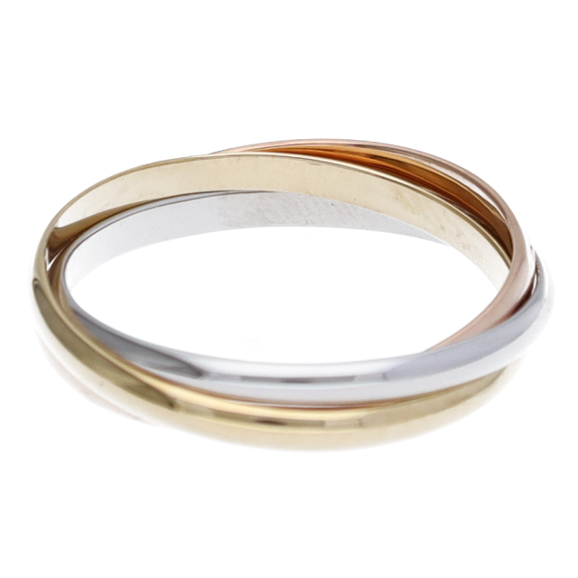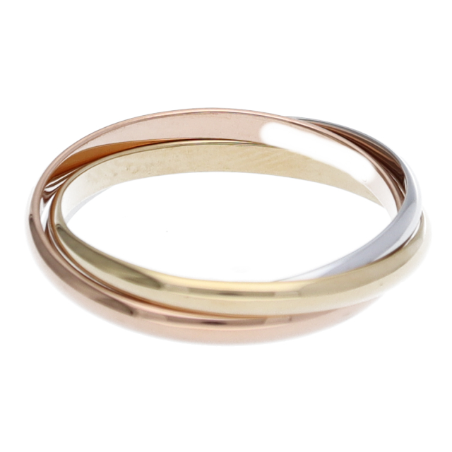 USED品。3カラー製。ピンクが愛、イエローが忠誠、ホワイトが友情を象徴するカルティエの人気のトリニティコレクションです。