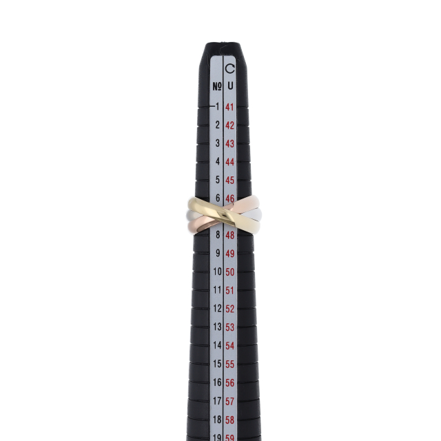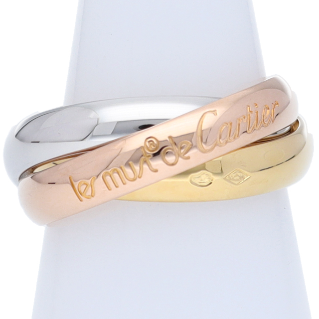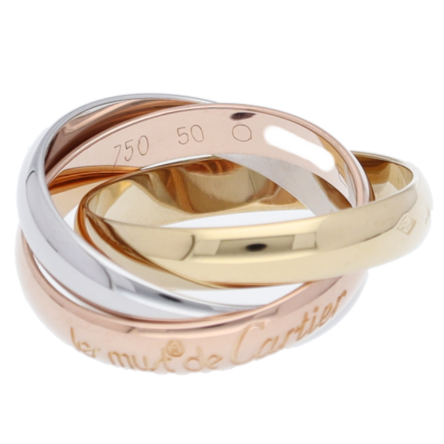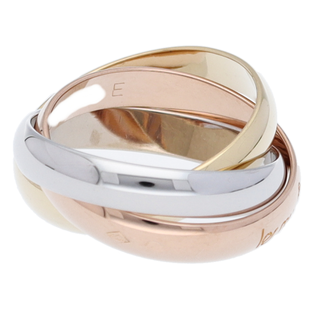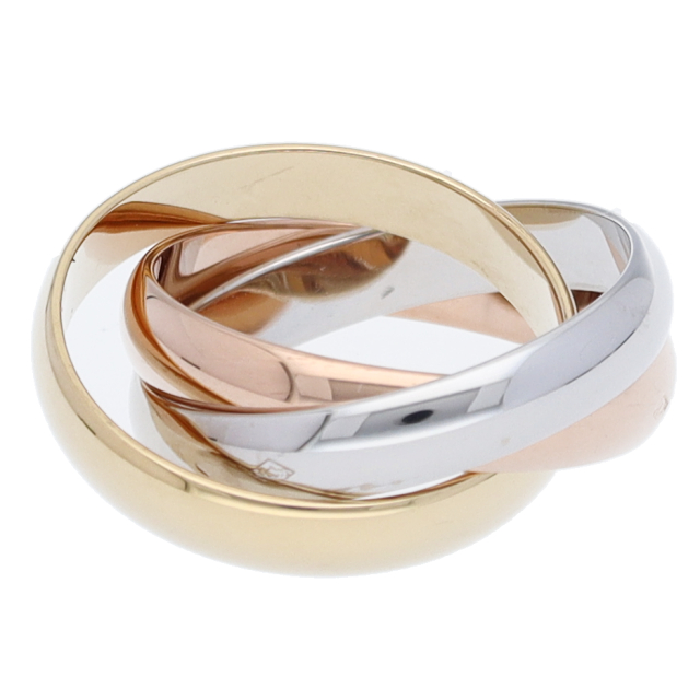 USED品。3カラー製。ピンクが愛、イエローが忠誠、ホワイトが友情を象徴するカルティエの人気のトリニティコレクションです。