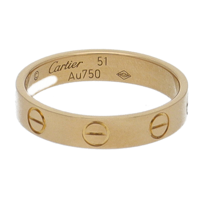 USED品。イエローゴールド製。カルティエの代表モデル。普段にもお使い頂けるデザインで、ペアリングやマリッジリングとしても人気です。
