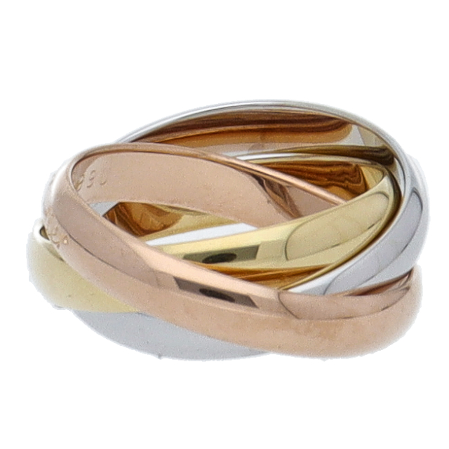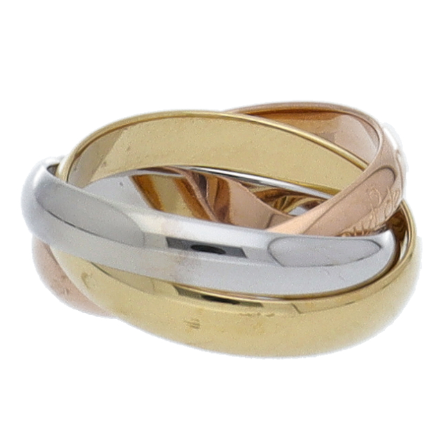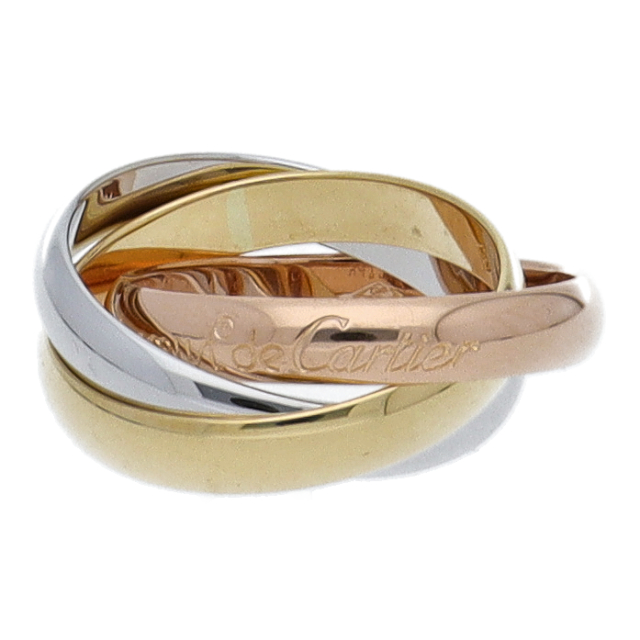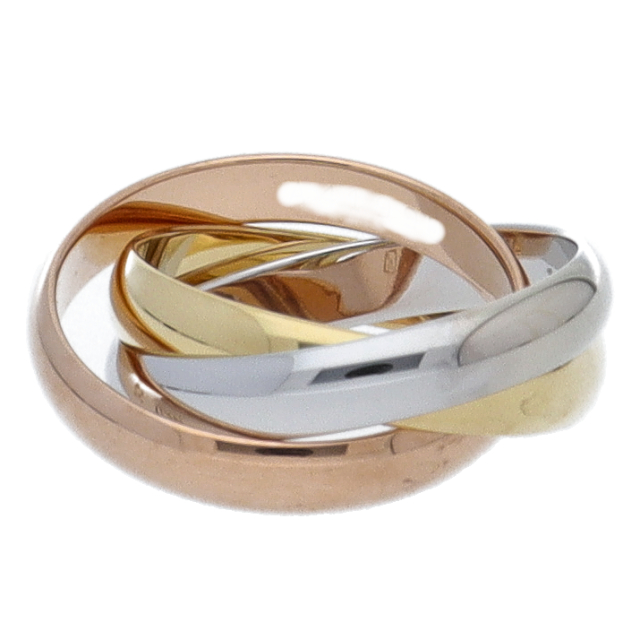 USED品。3カラー製。ピンクが愛、イエローが忠誠、ホワイトが友情を象徴するカルティエの人気のトリニティコレクションです。