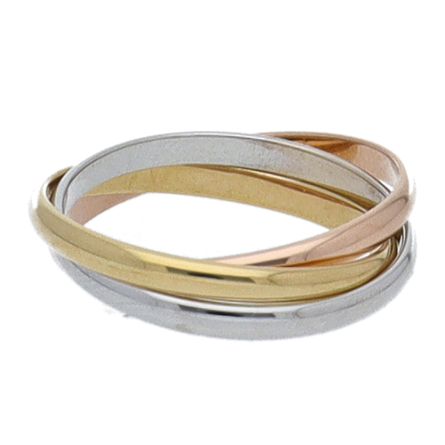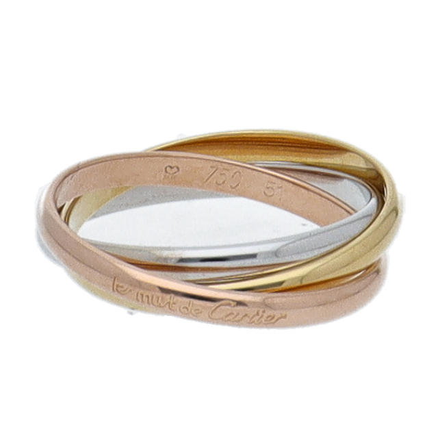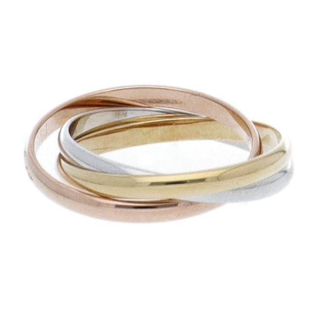 USED品。3カラー製。ピンクが愛、イエローが忠誠、ホワイトが友情を象徴するカルティエの人気のトリニティコレクションです。