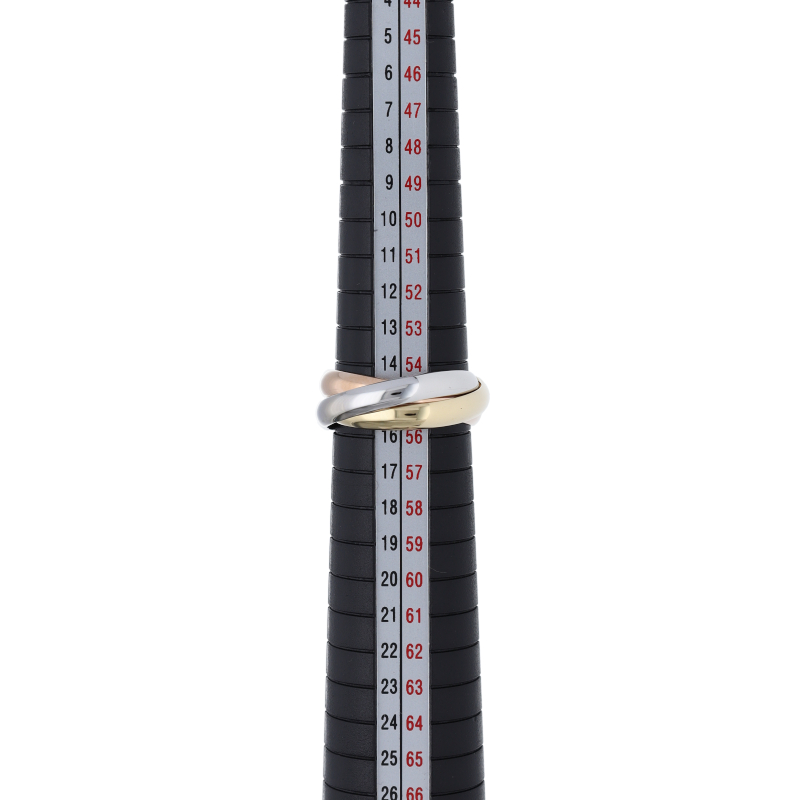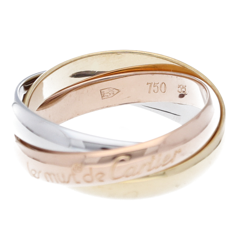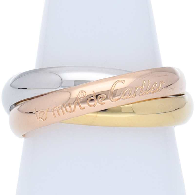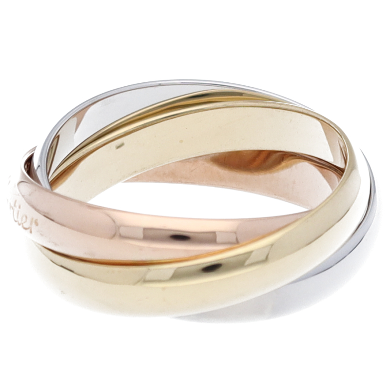 USED品。3カラー製。ピンクが愛、イエローが忠誠、ホワイトが友情を象徴するカルティエの人気のトリニティコレクションです。