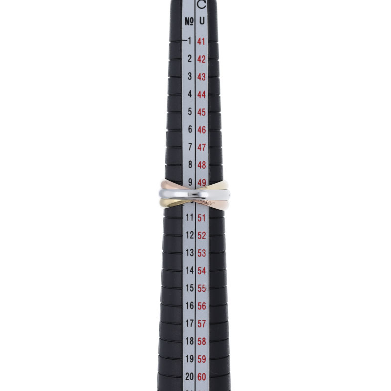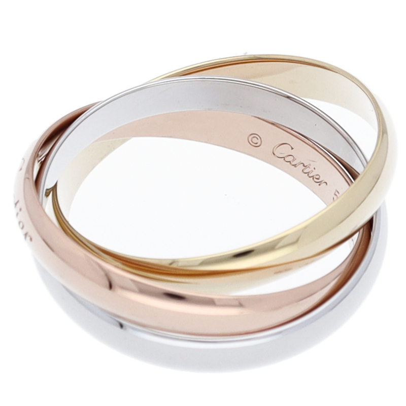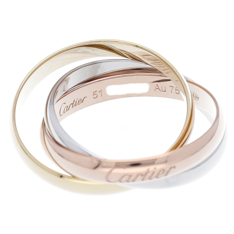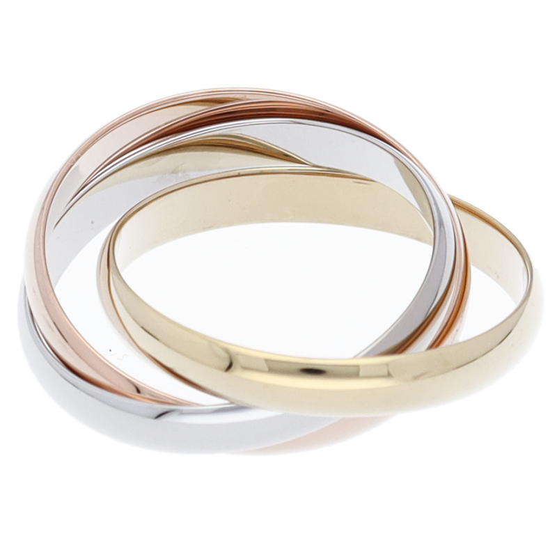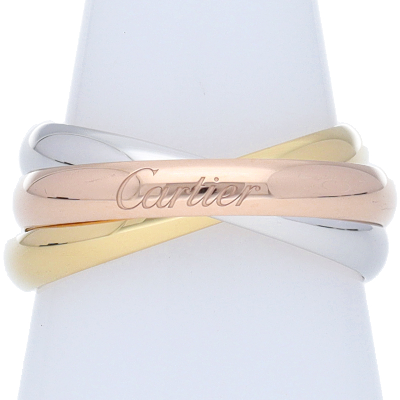 USED品。3カラー製。ピンクが愛、イエローが忠誠、ホワイトが友情を象徴するカルティエの人気のトリニティコレクションです。