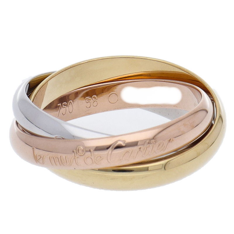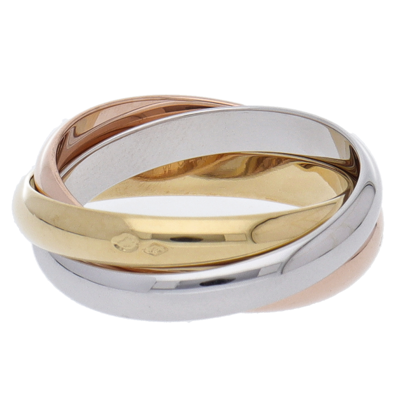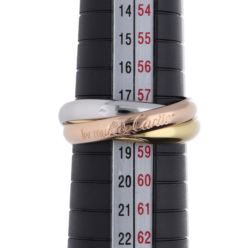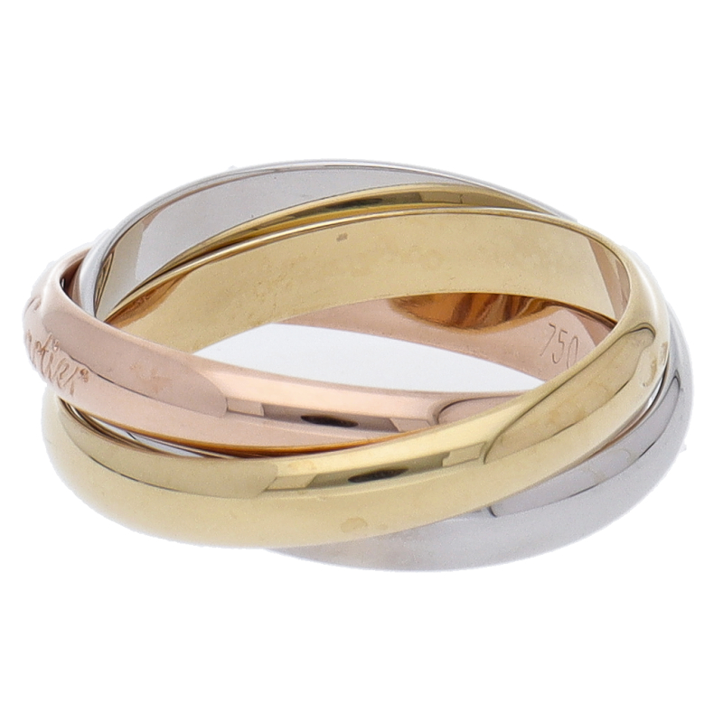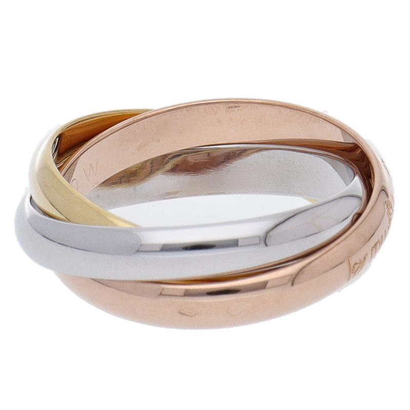 USED品。3カラー製。ピンクが愛、イエローが忠誠、ホワイトが友情を象徴するカルティエの人気のトリニティコレクションです。