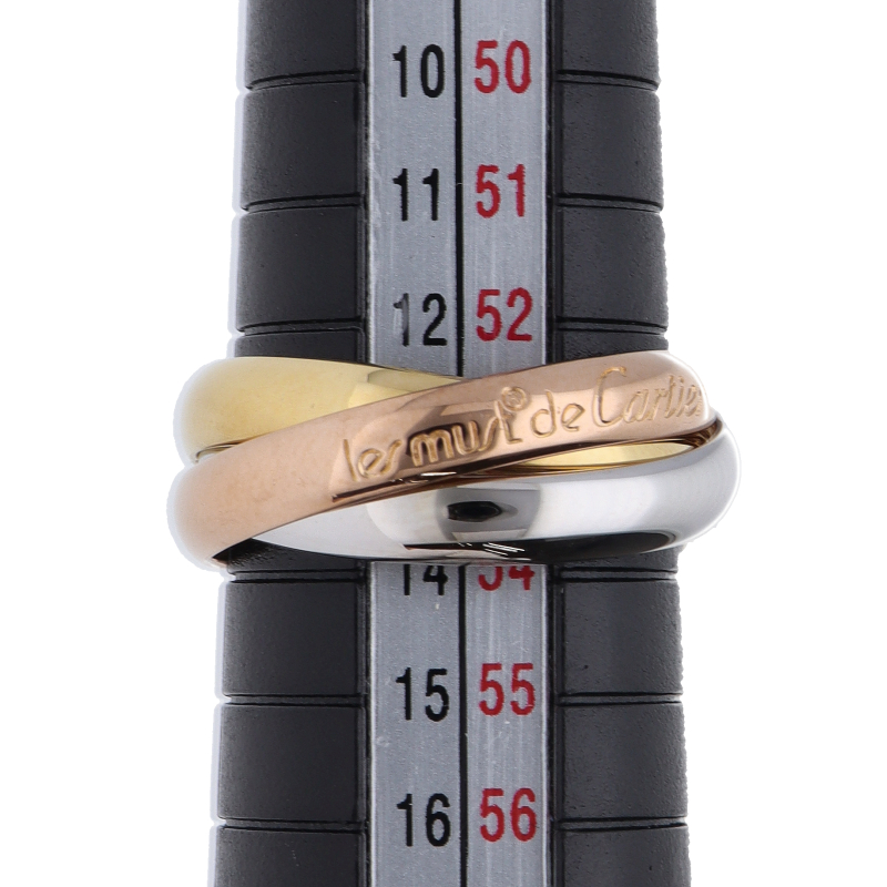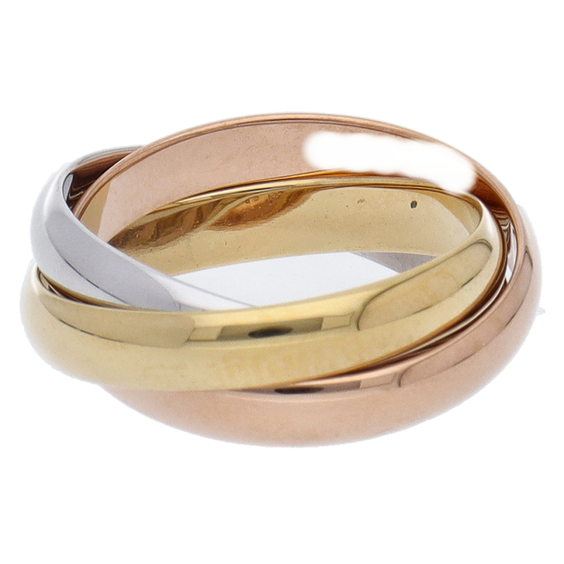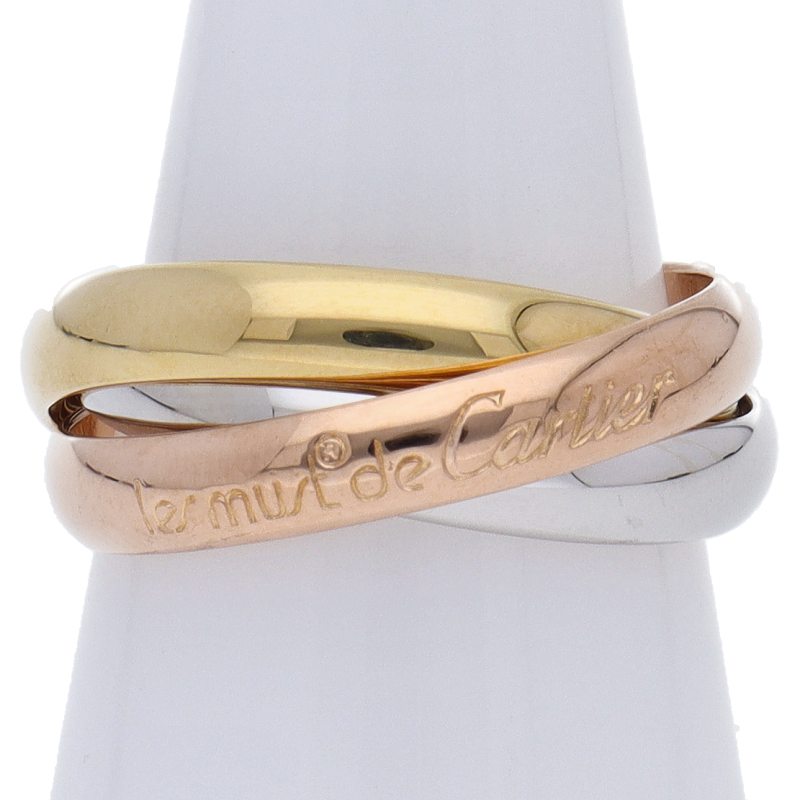 USED品。3カラー製。ピンクが愛、イエローが忠誠、ホワイトが友情を象徴するカルティエの人気のトリニティコレクションです。