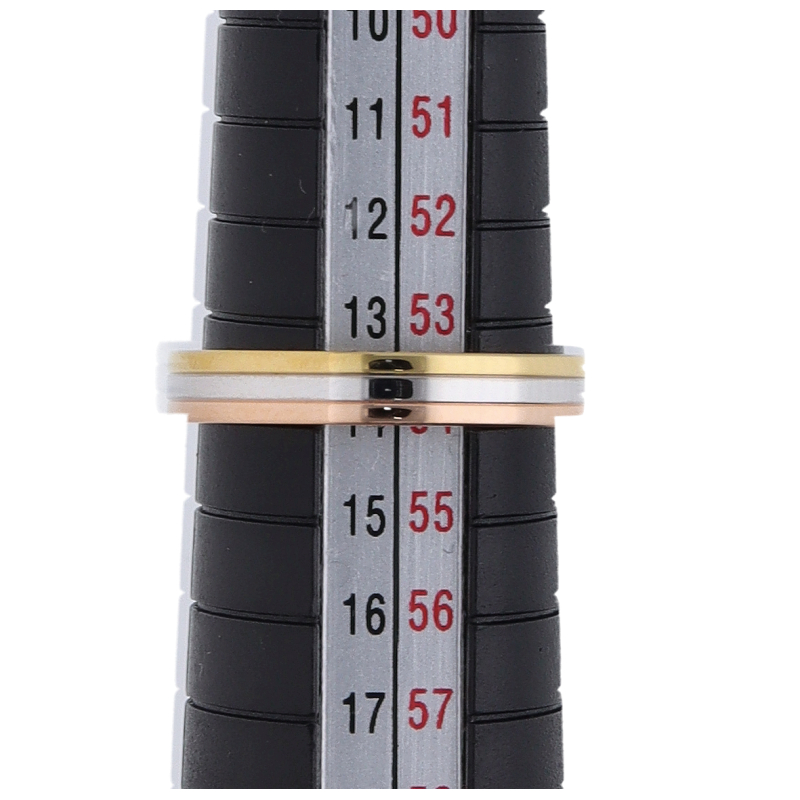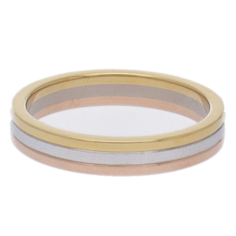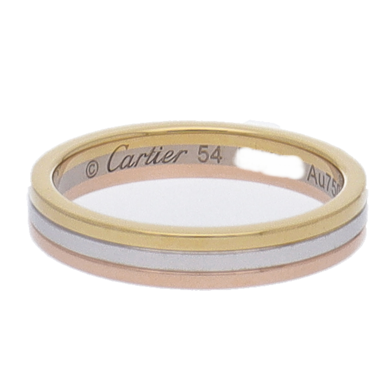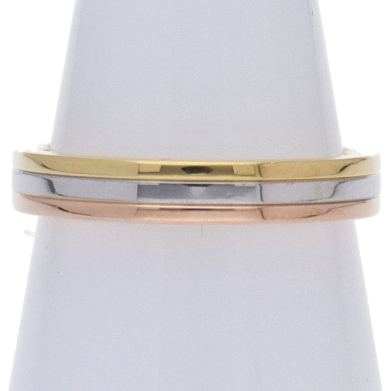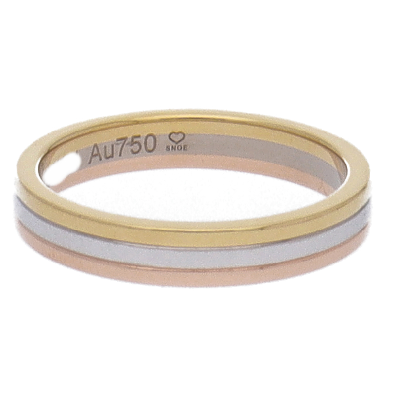 USED品。3カラー製。ピンクが愛、イエローが忠誠、ホワイトが友情を象徴するカルティエの人気のウェディングリングです。
