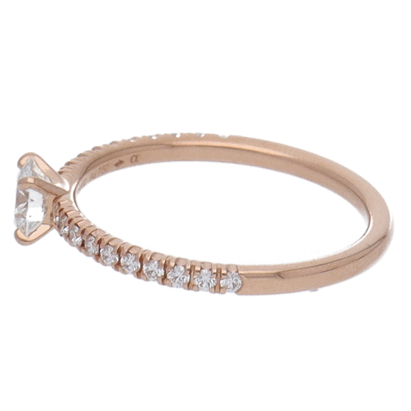 USED品。ピンクゴールド製。ダイヤを半周に配したハーフエタニティリング。シンプルなデザインですのでファッションを選ばず、重ね付けにもおすすめです。