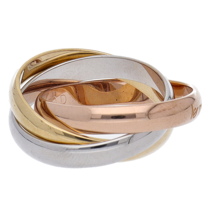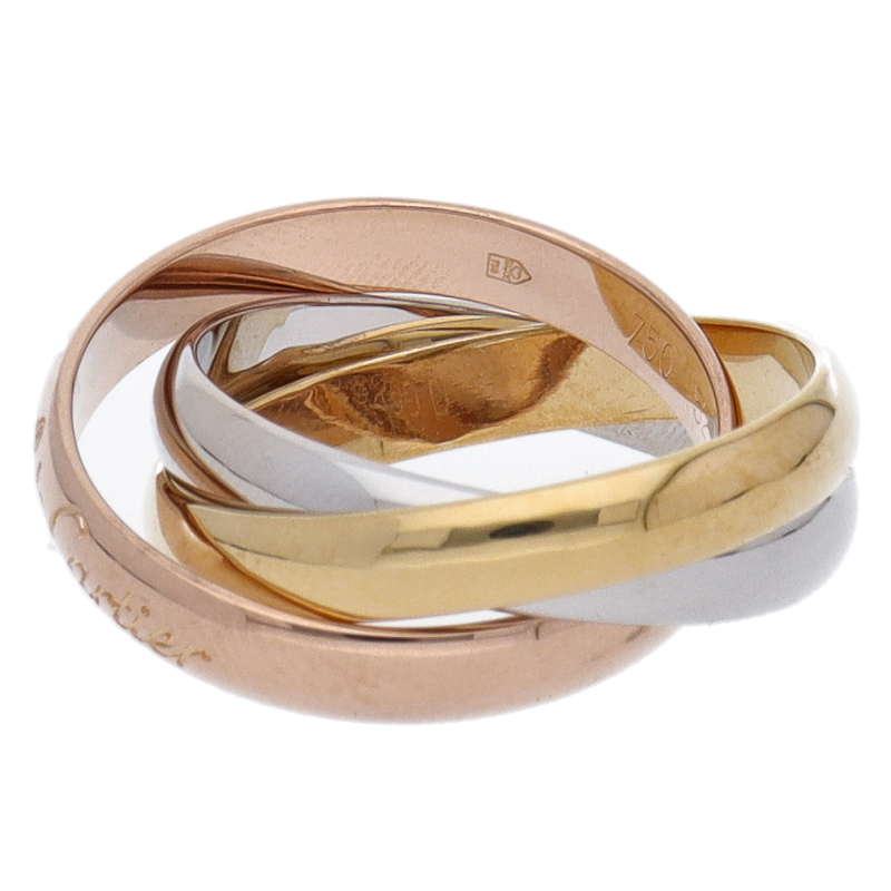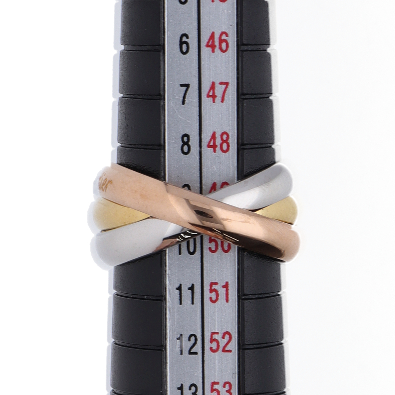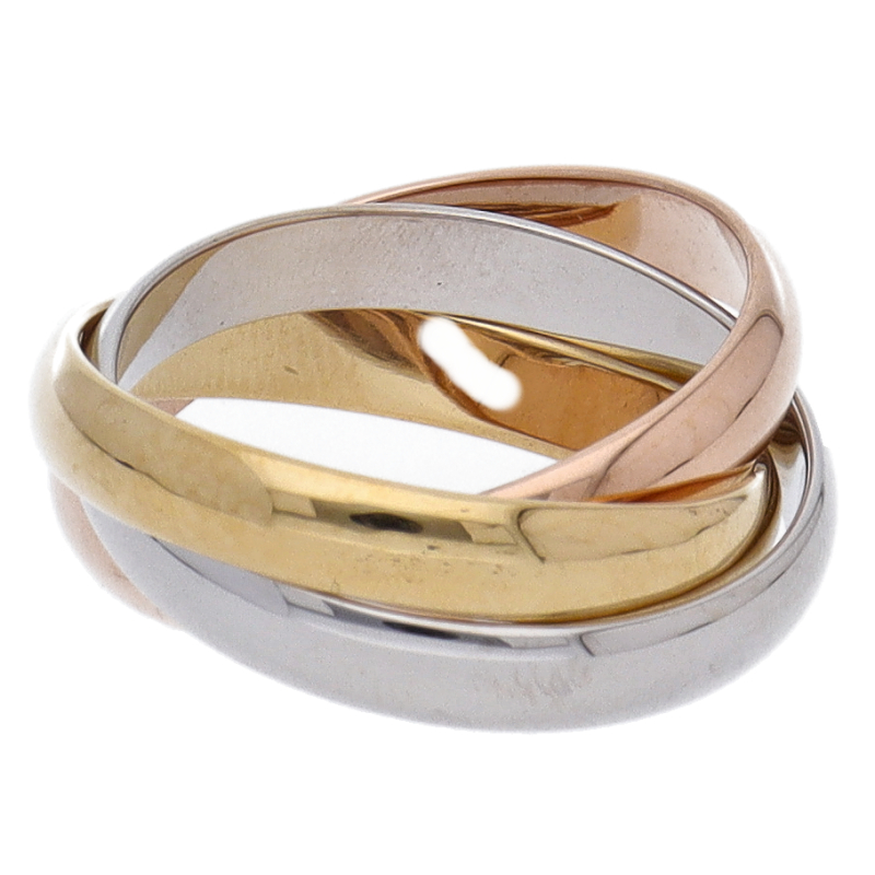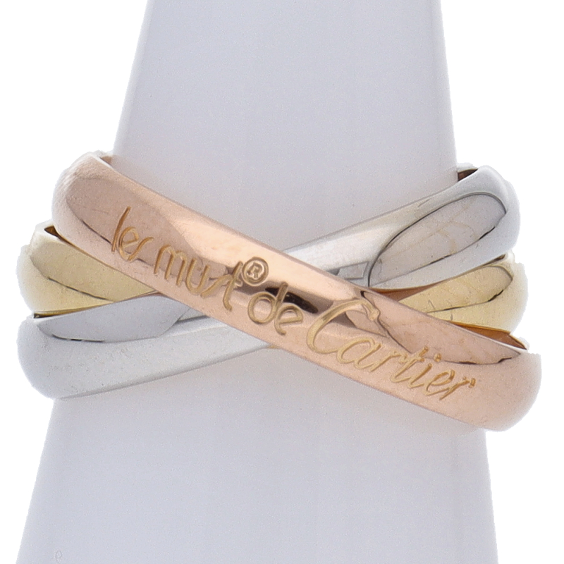USED品。3カラー製。ピンクが愛、イエローが忠誠、ホワイトが友情を象徴するカルティエの人気のトリニティコレクションです。