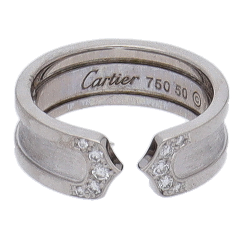 USED品。ホワイトゴールド製。カルティエとクリエイション「創造」「作品」のCが重なったシンプルなデザイン。カルティエの人気のC2コレクションです。