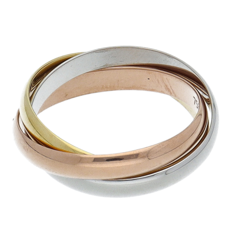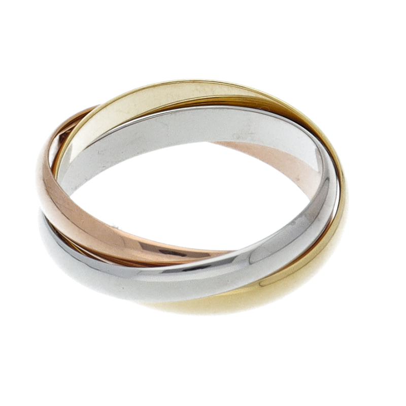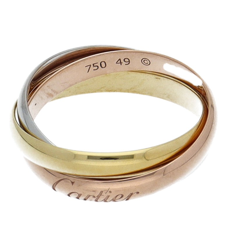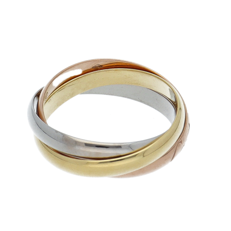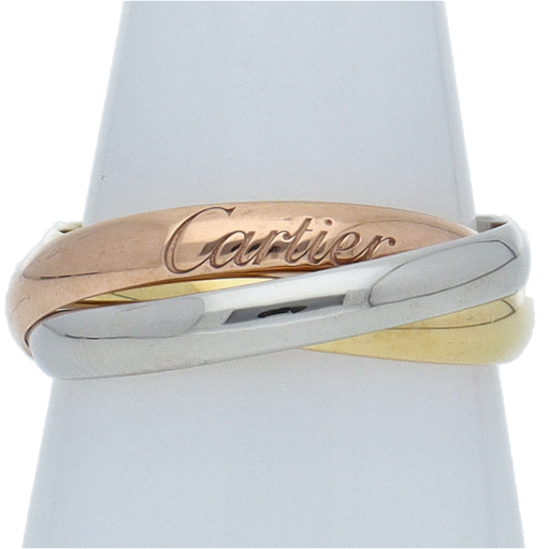 USED品。3カラー製。ピンクが愛、イエローが忠誠、ホワイトが友情を象徴するカルティエの人気のトリニティコレクションです。