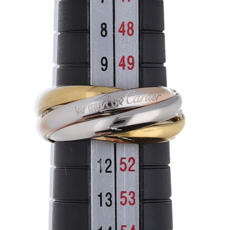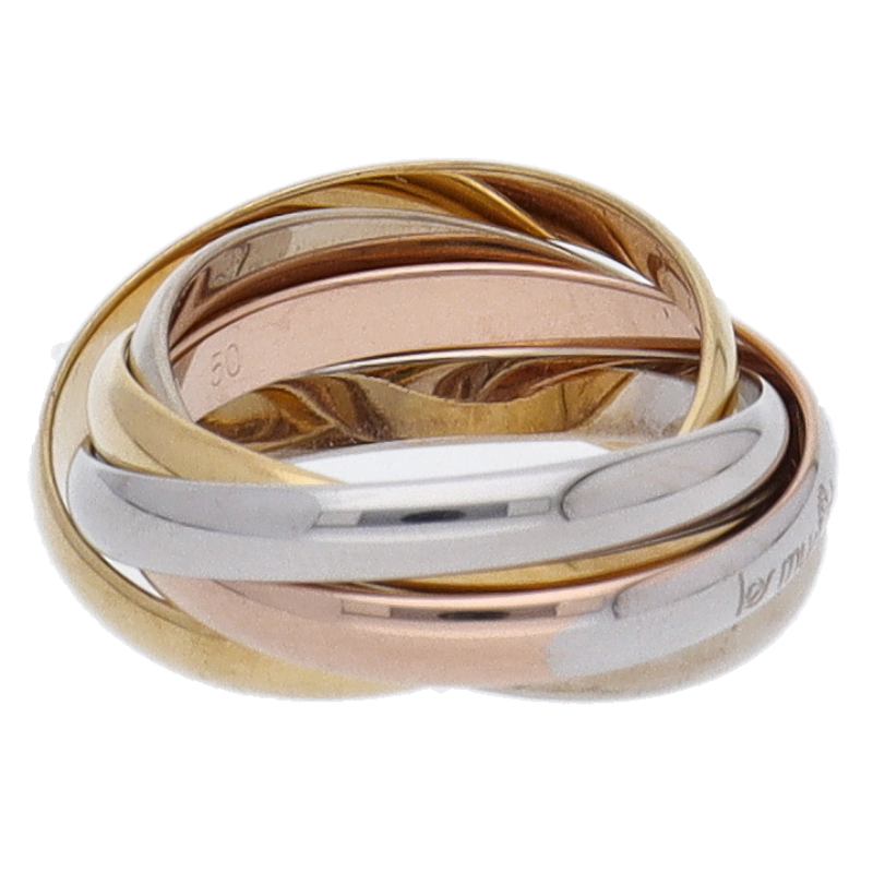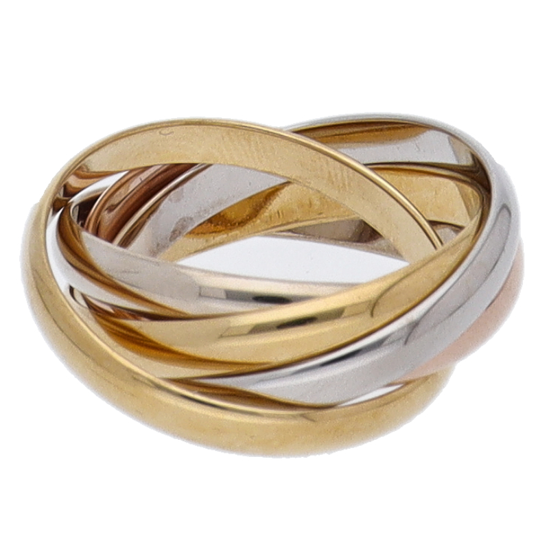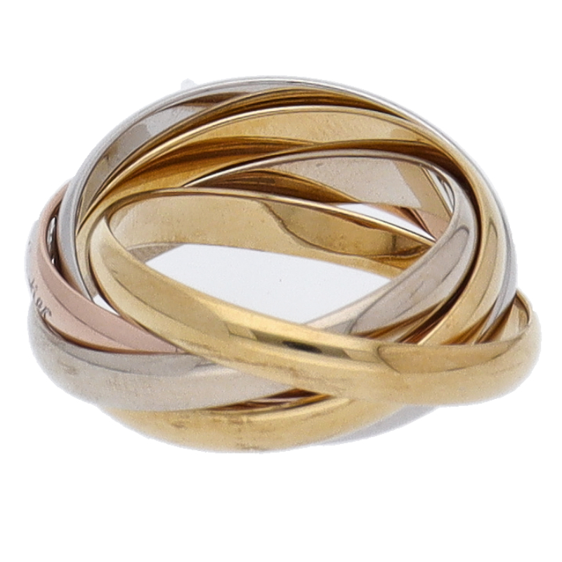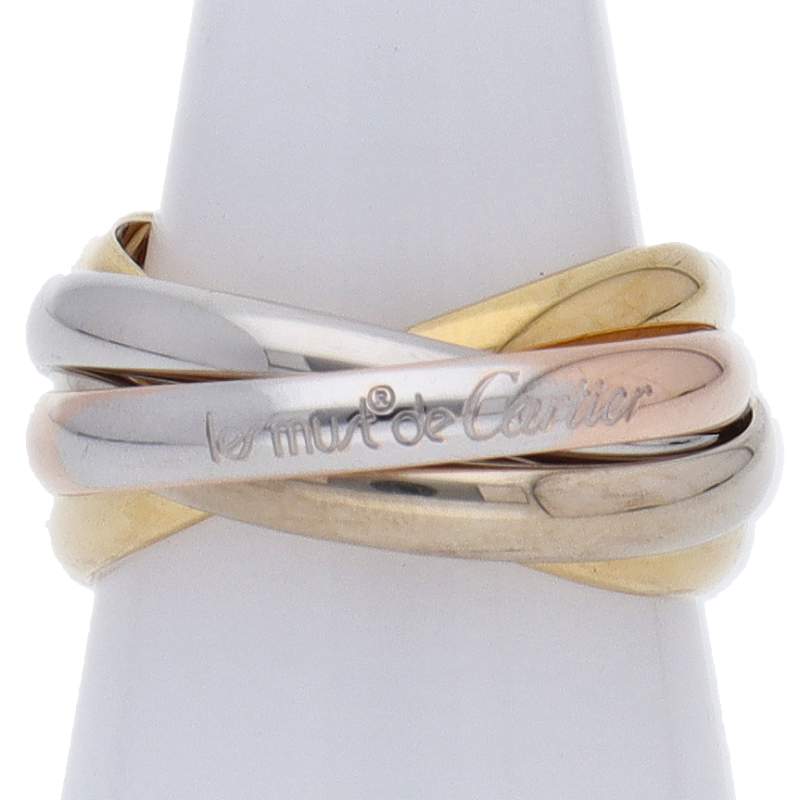 USED品。3カラー製。ピンクが愛、イエローが忠誠、ホワイトが友情を象徴するカルティエの人気のトリニティコレクションです。