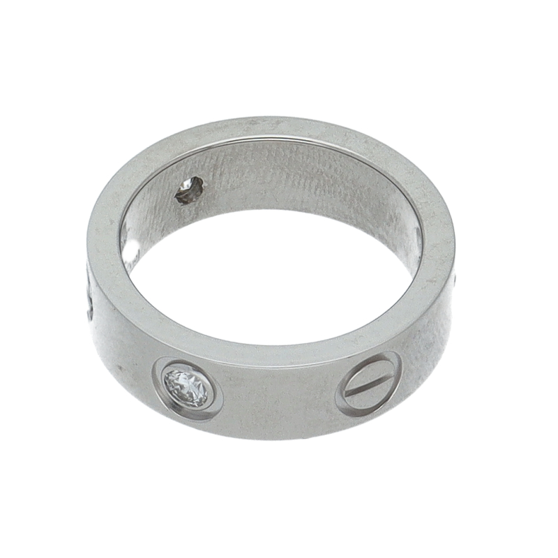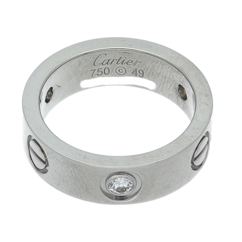 USED品。プラチナ製。自由な愛とその絆を象徴するビスモチーフが特徴で、「永遠の愛」の象徴として作られたカルティエの人気のラブコレクションです。