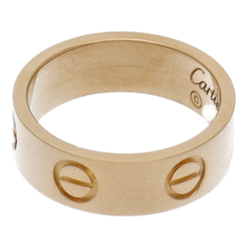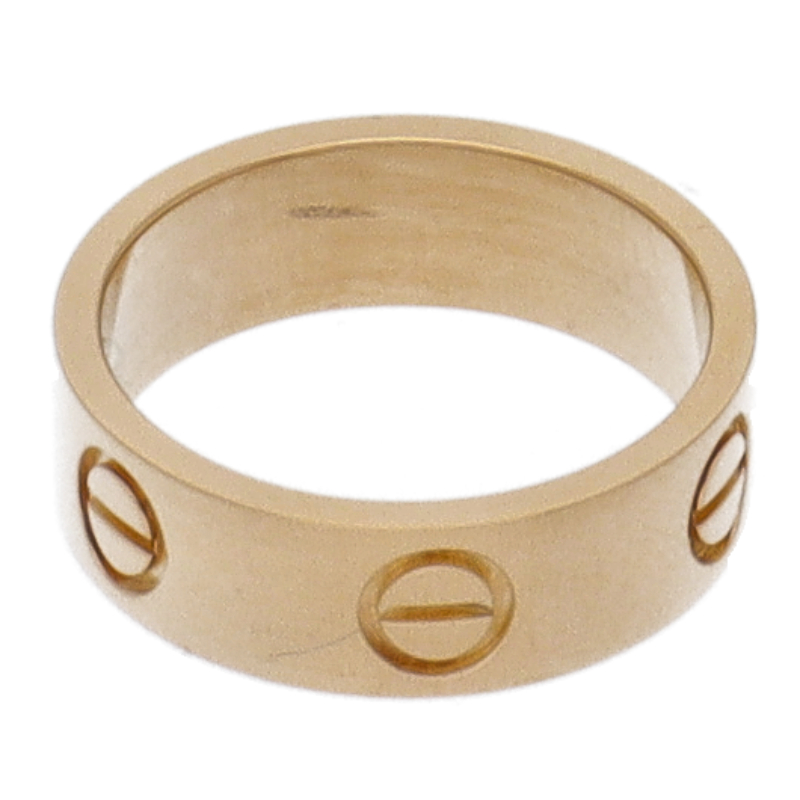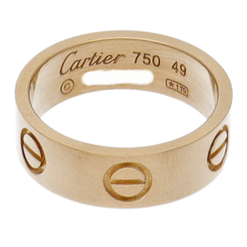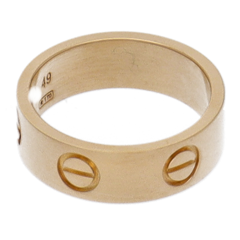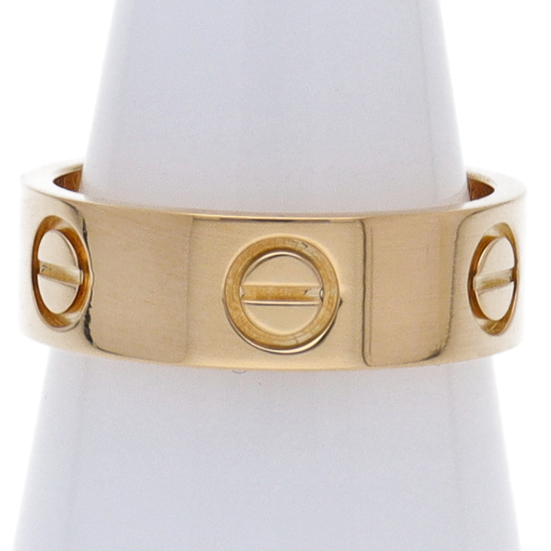 USED品。イエローゴールド製。自由な愛とその絆を象徴するビスモチーフが特徴で、「永遠の愛」の象徴として作られたカルティエの人気のラブコレクションです。