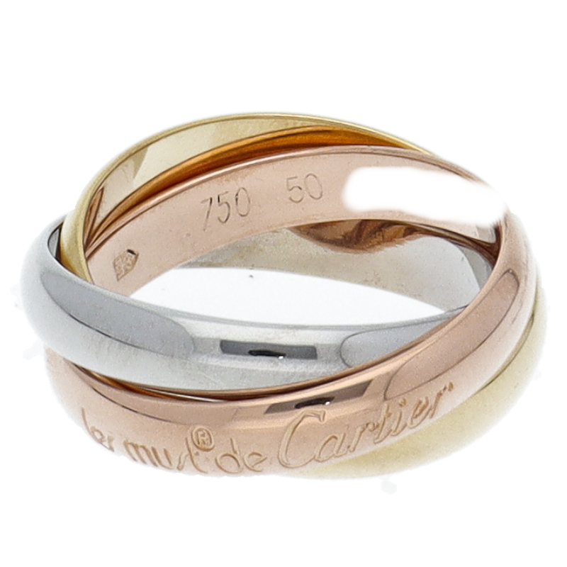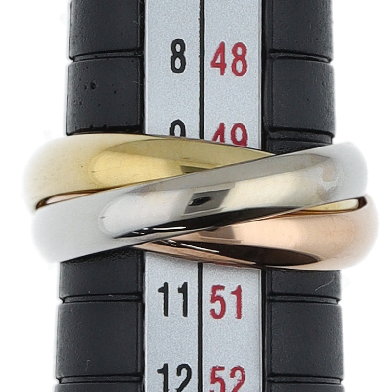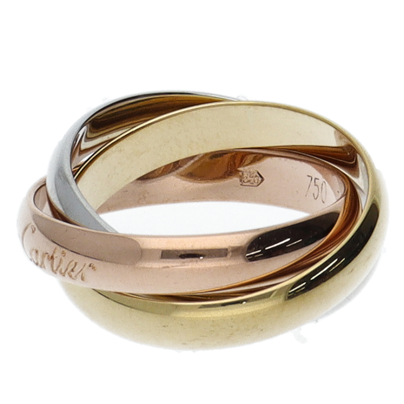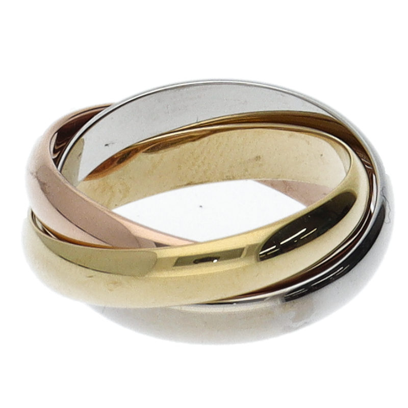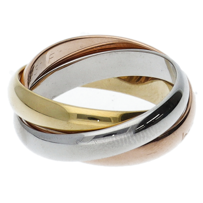 USED品。3カラー製。ピンクが愛、イエローが忠誠、ホワイトが友情を象徴するカルティエの人気のトリニティコレクションです。