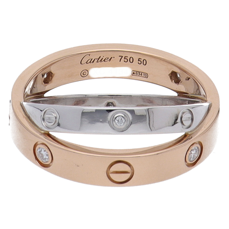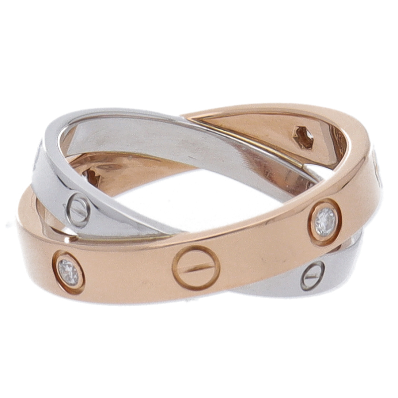 USED品。ホワイトゴールド/ピンクゴールド製。カルティエの代表モデル。普段にもお使い頂けるデザインで、ペアリングやマリッジリングとしても人気です。