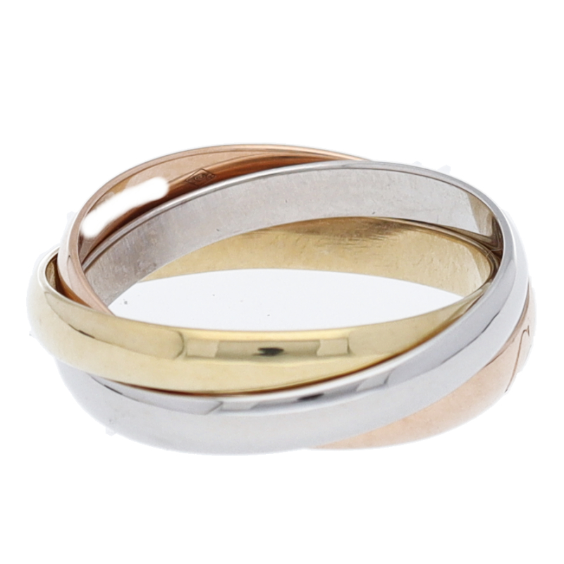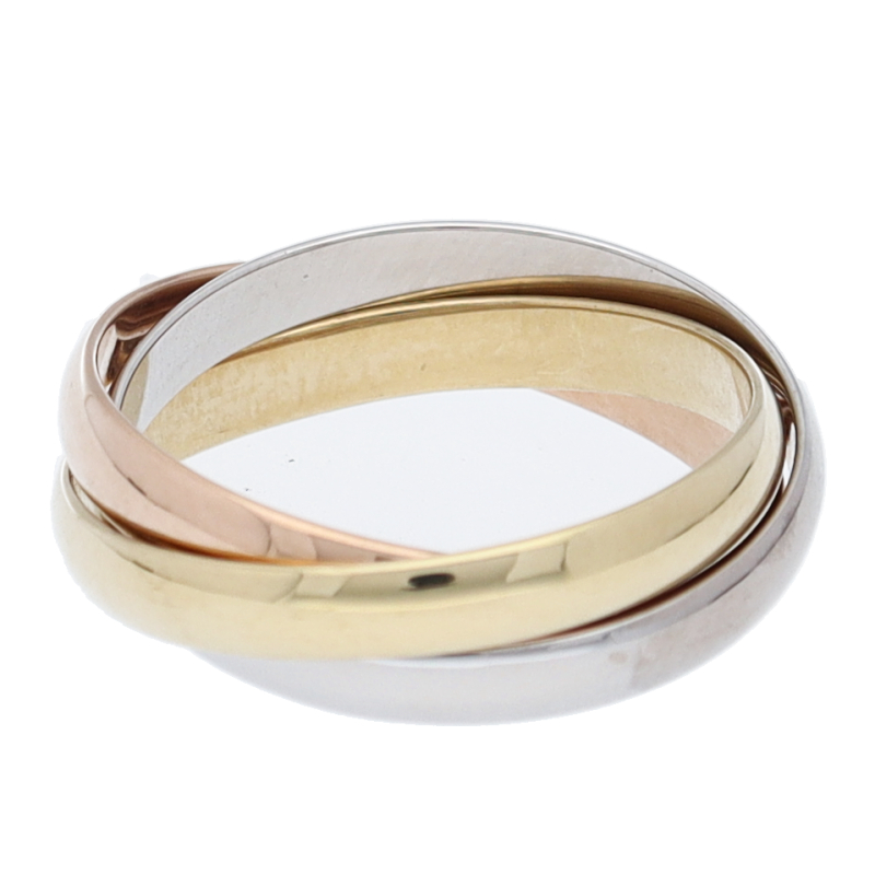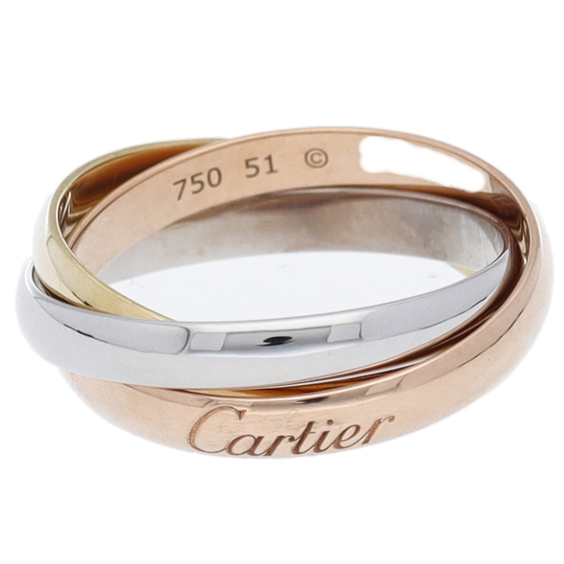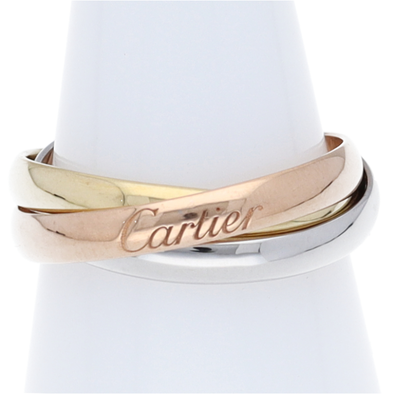 USED品。3カラー製。ピンクが愛、イエローが忠誠、ホワイトが友情を象徴するカルティエの人気のトリニティコレクションです。