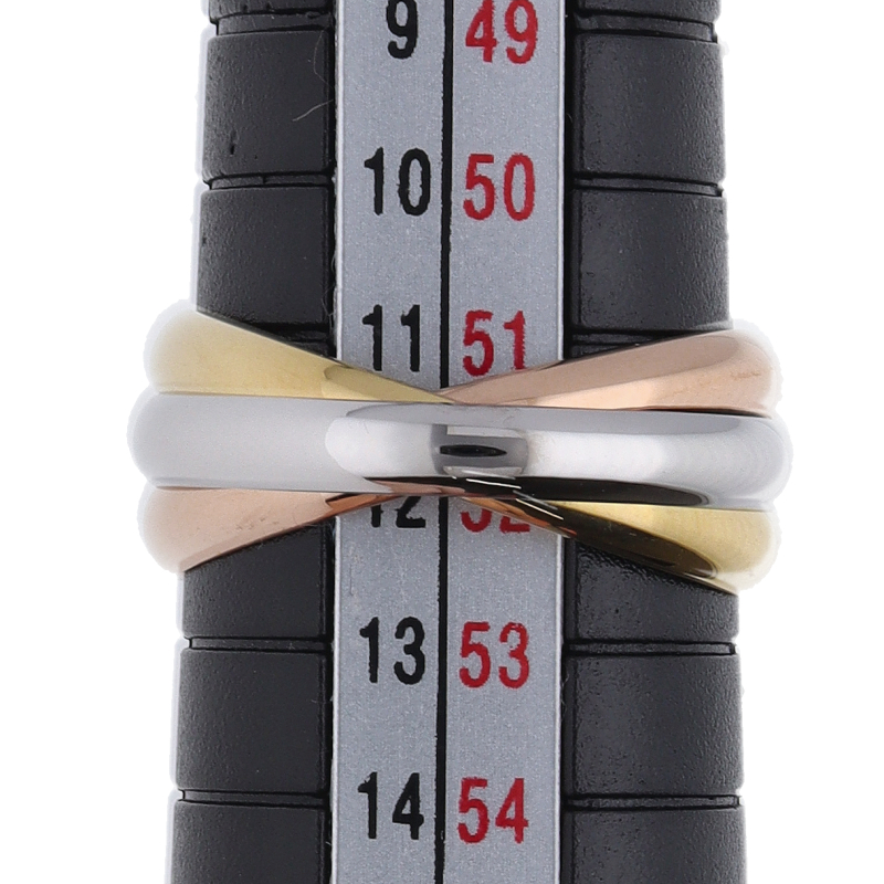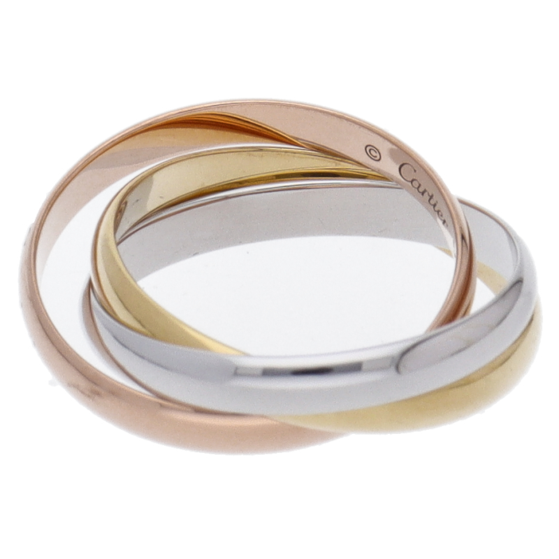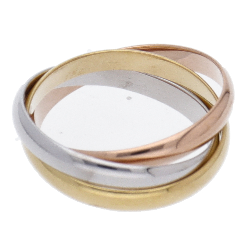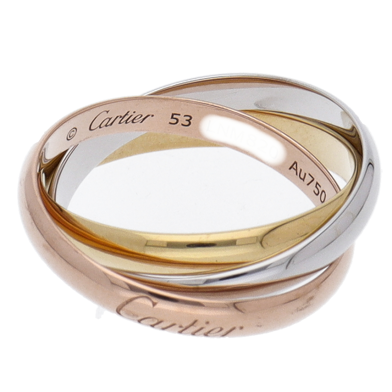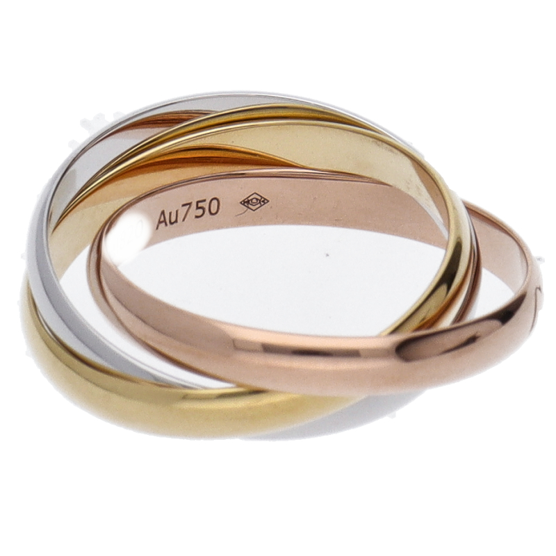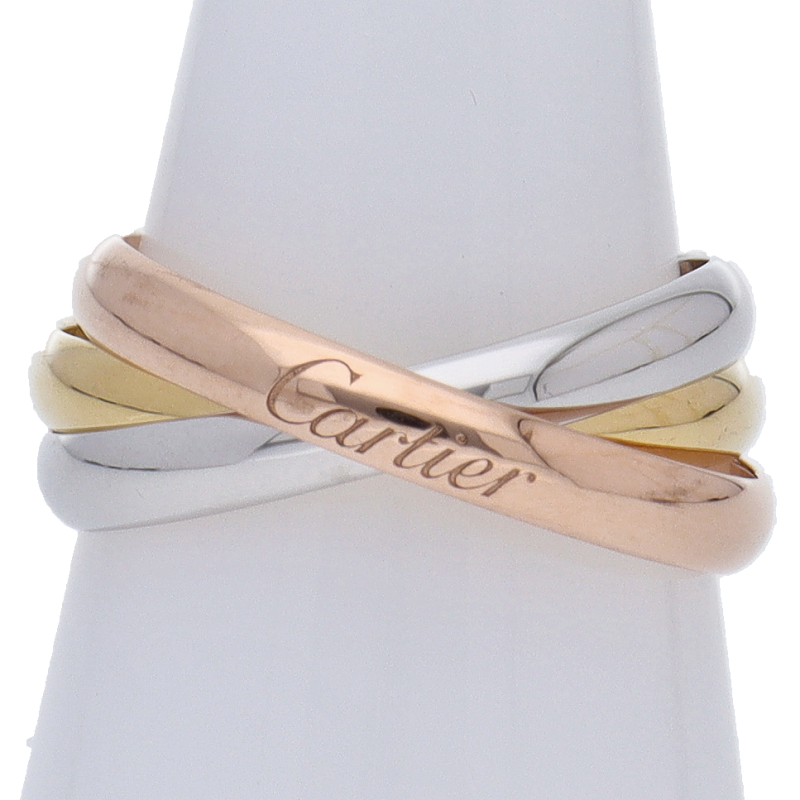 USED品。3カラー製。ピンクが愛、イエローが忠誠、ホワイトが友情を象徴するカルティエの人気のトリニティコレクションです。