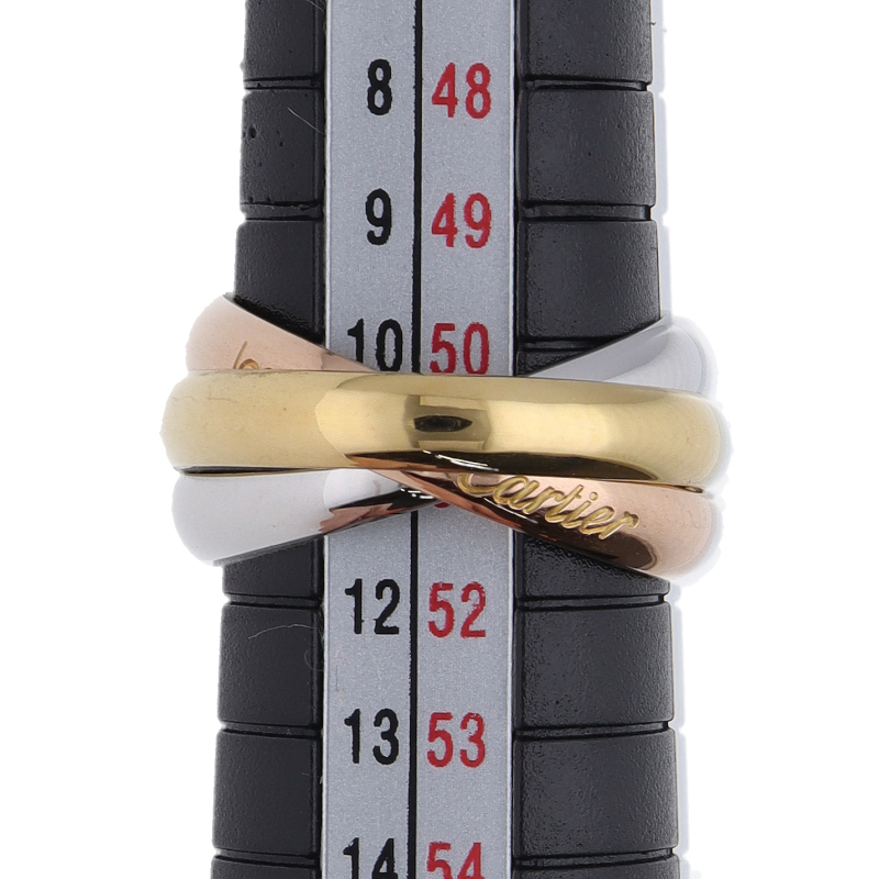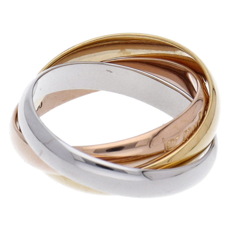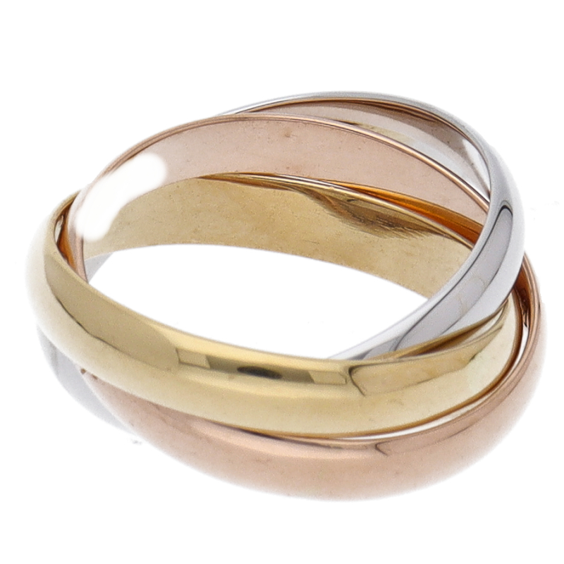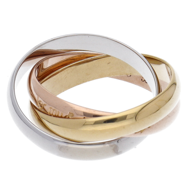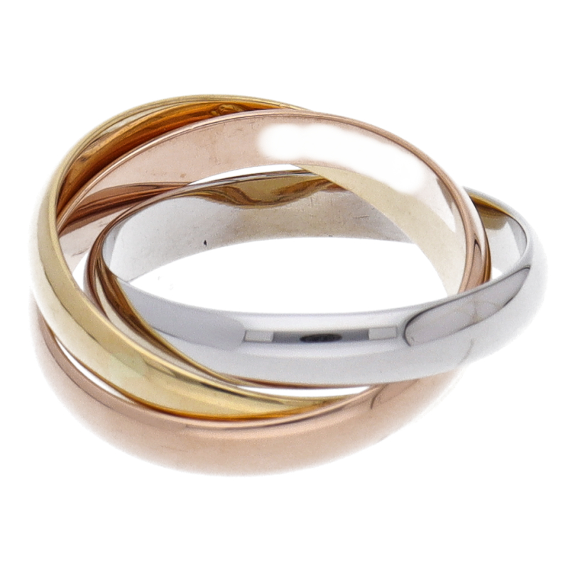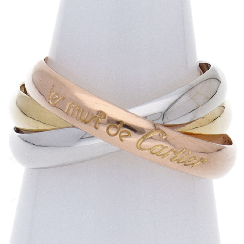 USED品。3カラー製。ピンクが愛、イエローが忠誠、ホワイトが友情を象徴するカルティエの人気のトリニティコレクションです。