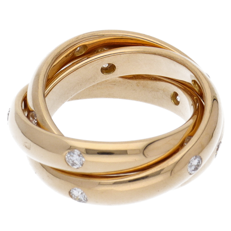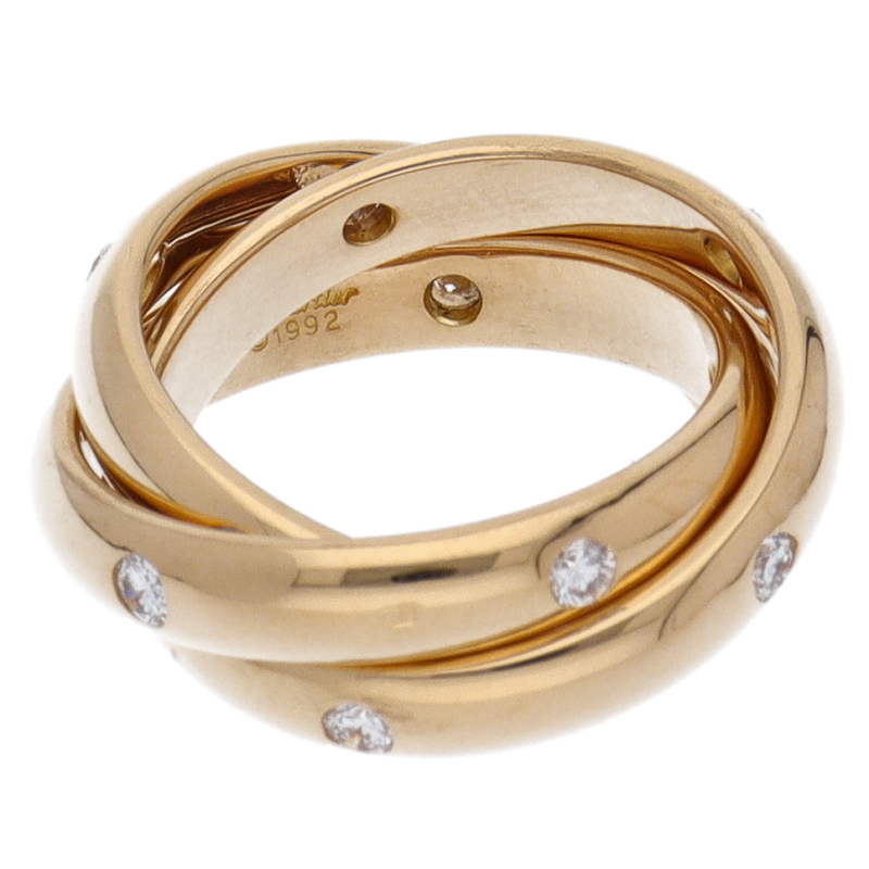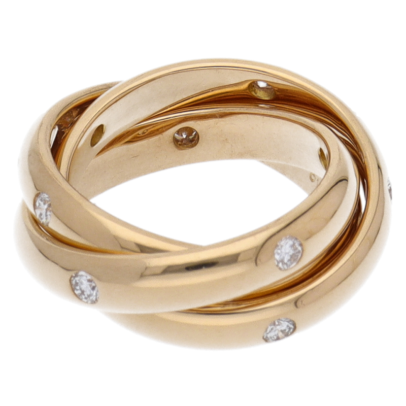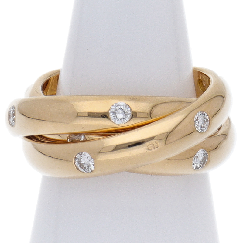 USED品。イエローゴールド製。3本のリングが重なり合ったコンステレーションリング。15ポイントのダイヤで飾られております。