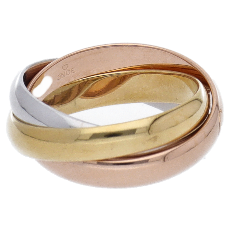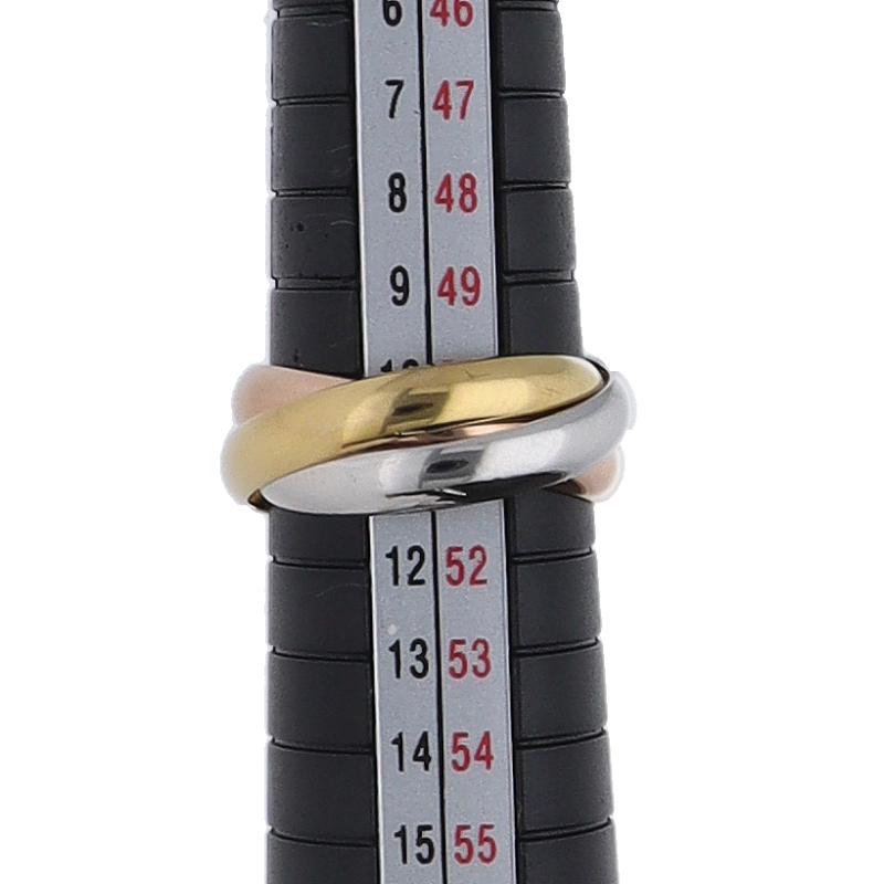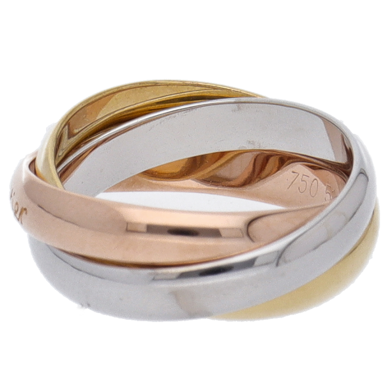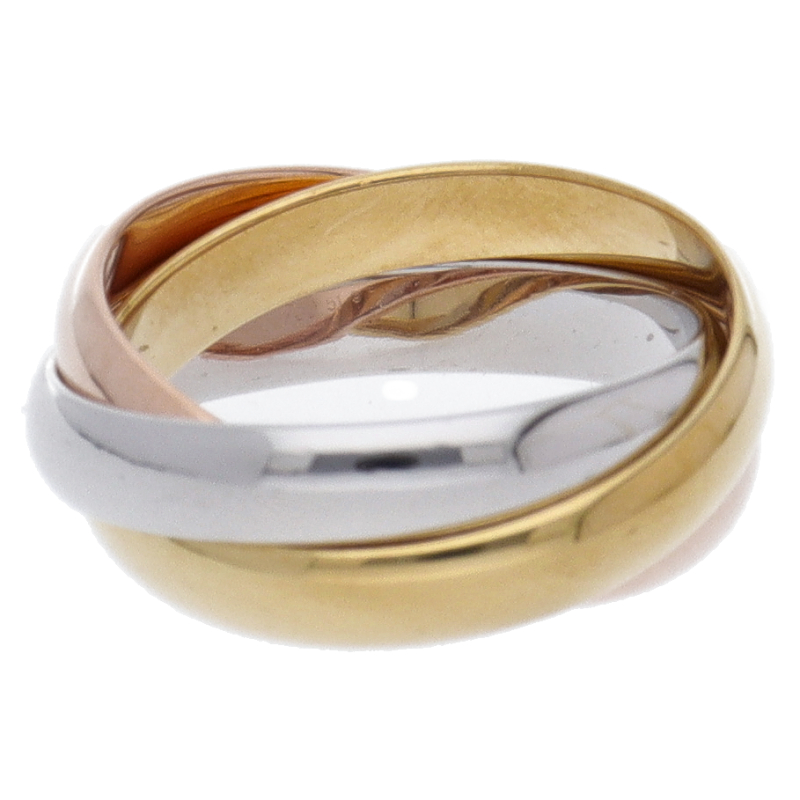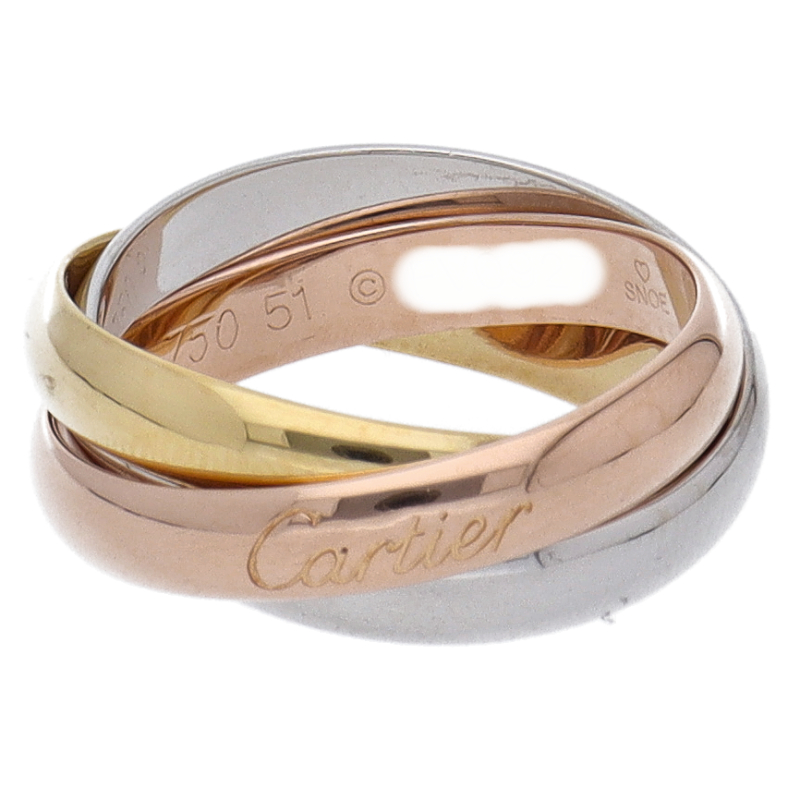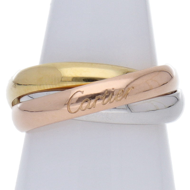 USED品。3カラー製。ピンクが愛、イエローが忠誠、ホワイトが友情を象徴するカルティエの人気のトリニティコレクションです。
