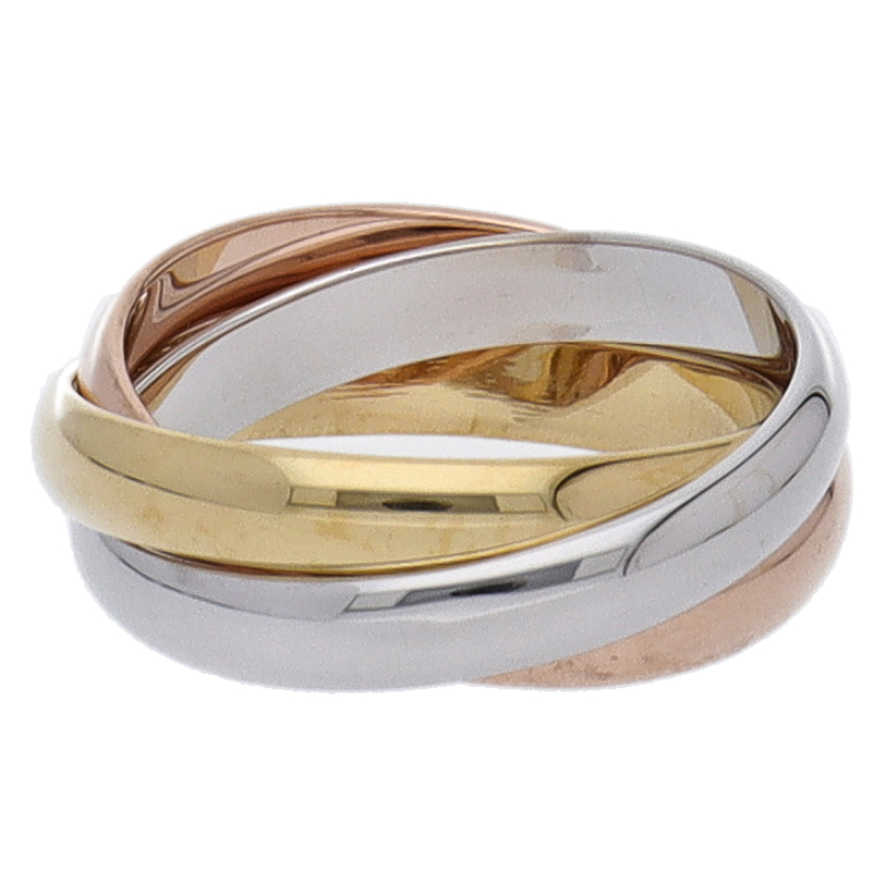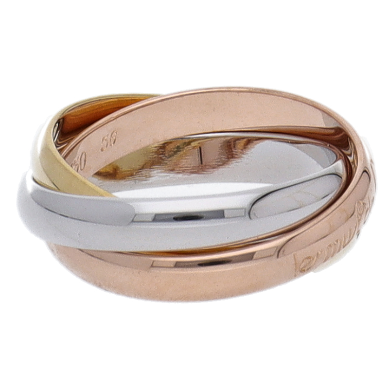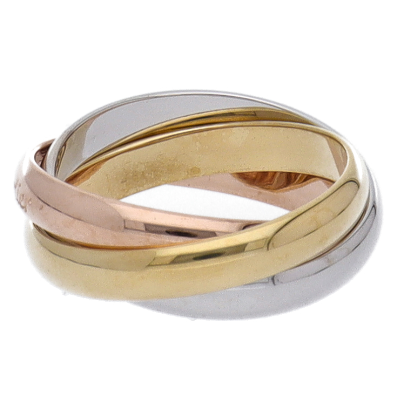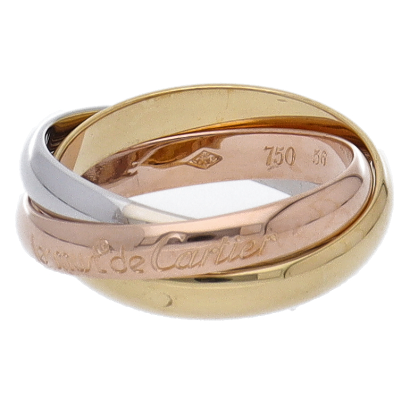 USED品。3カラー製。ピンクが愛、イエローが忠誠、ホワイトが友情を象徴するカルティエの人気のトリニティコレクションです。