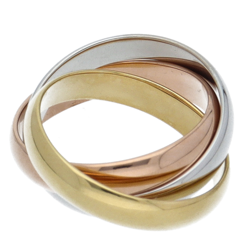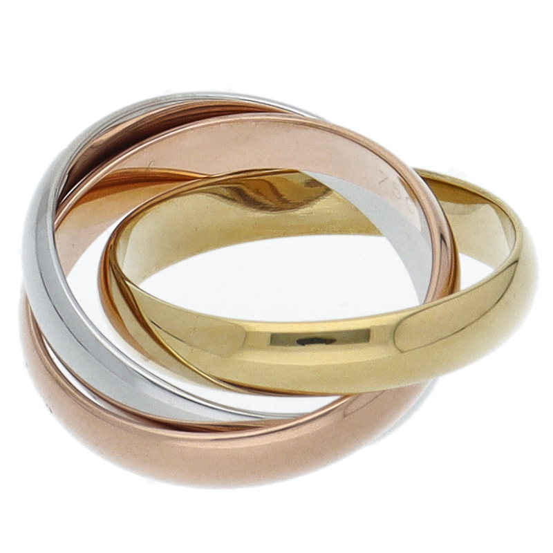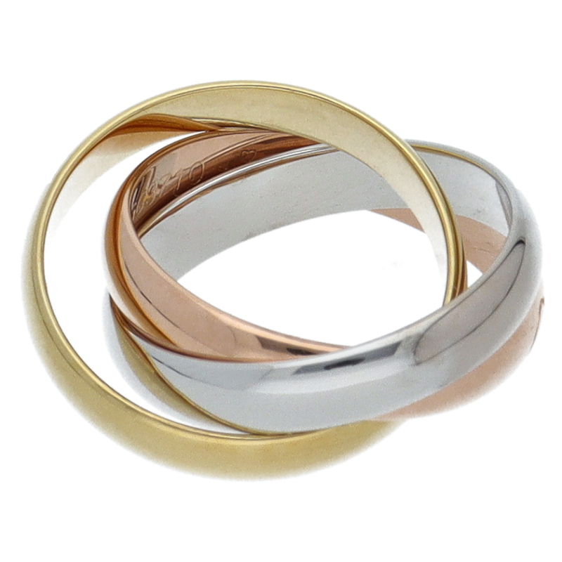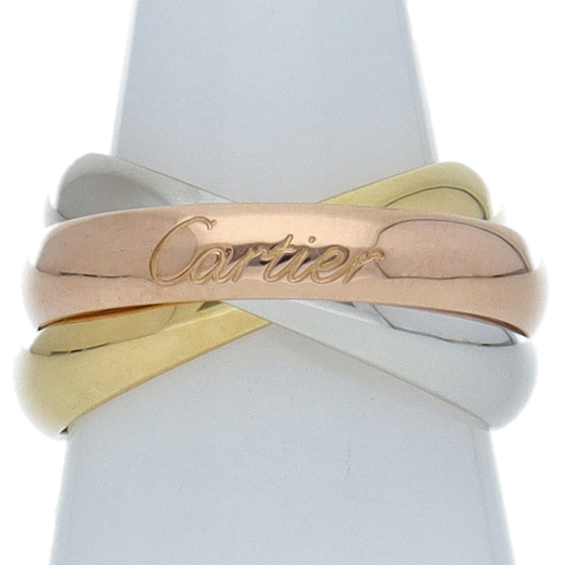 USED品。3カラー製。ピンクが愛、イエローが忠誠、ホワイトが友情を象徴するカルティエの人気のトリニティコレクションです。