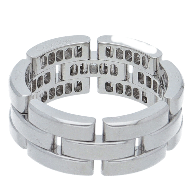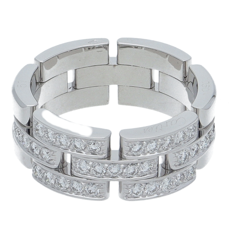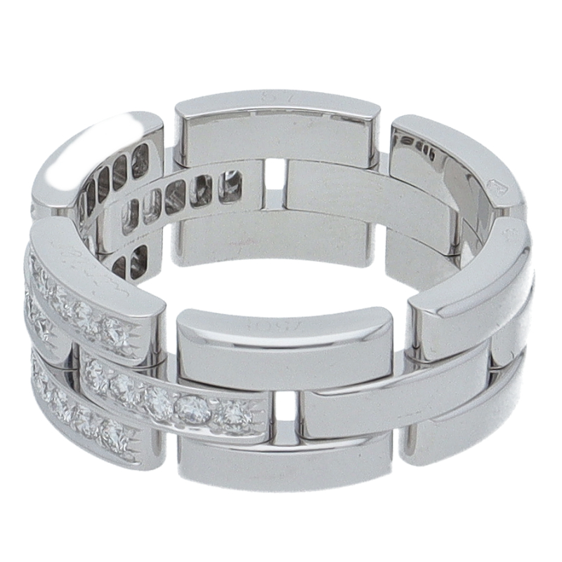 USED品。ホワイトゴールド製。フランス語で「連なる豹」という意味があり、しなやかで気高い雰囲気の豹をモチーフにしたカルティエの人気のパンテールコレクションです。