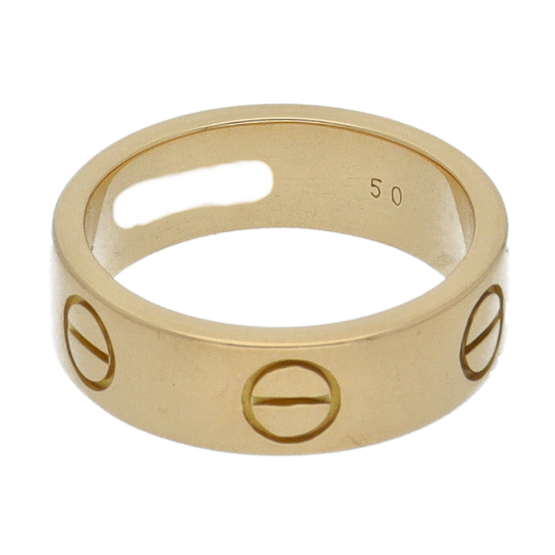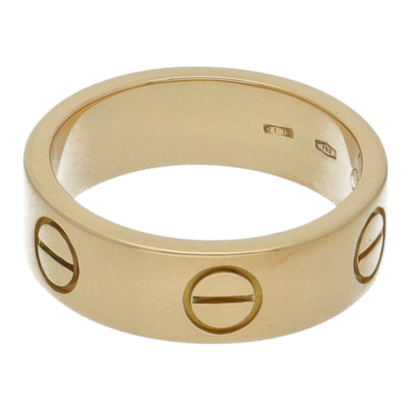 USED品。イエローゴールド製。自由な愛とその絆を象徴するビスモチーフが特徴で、「永遠の愛」の象徴として作られたカルティエの人気のラブコレクションです。