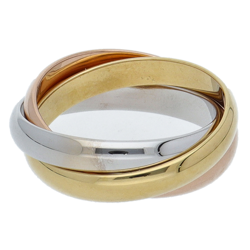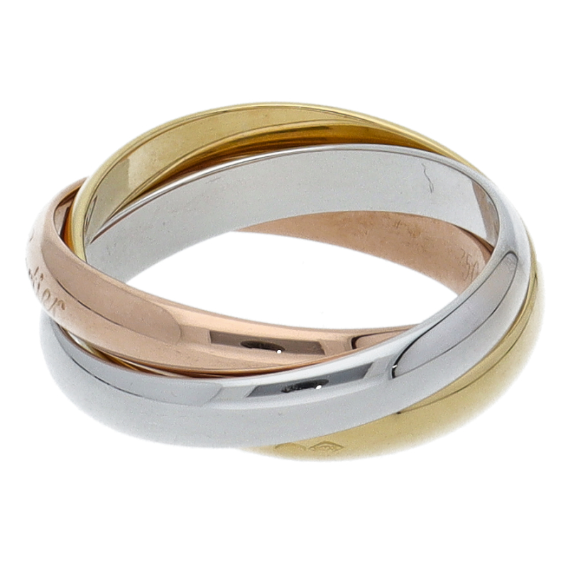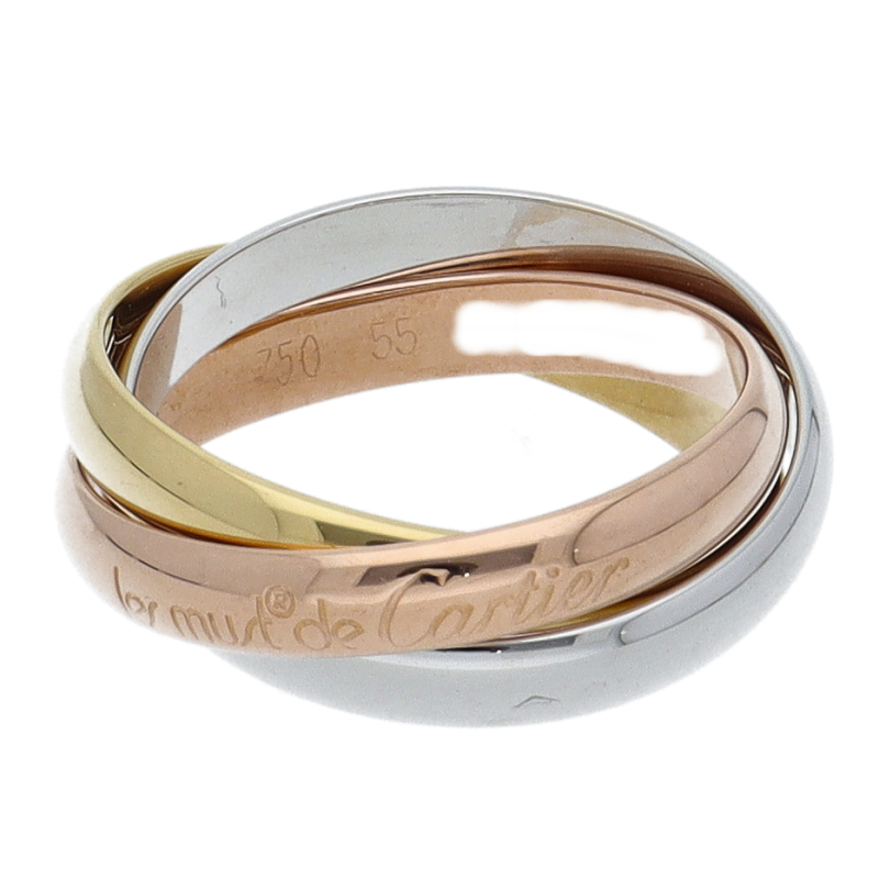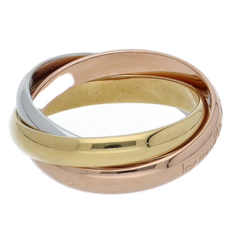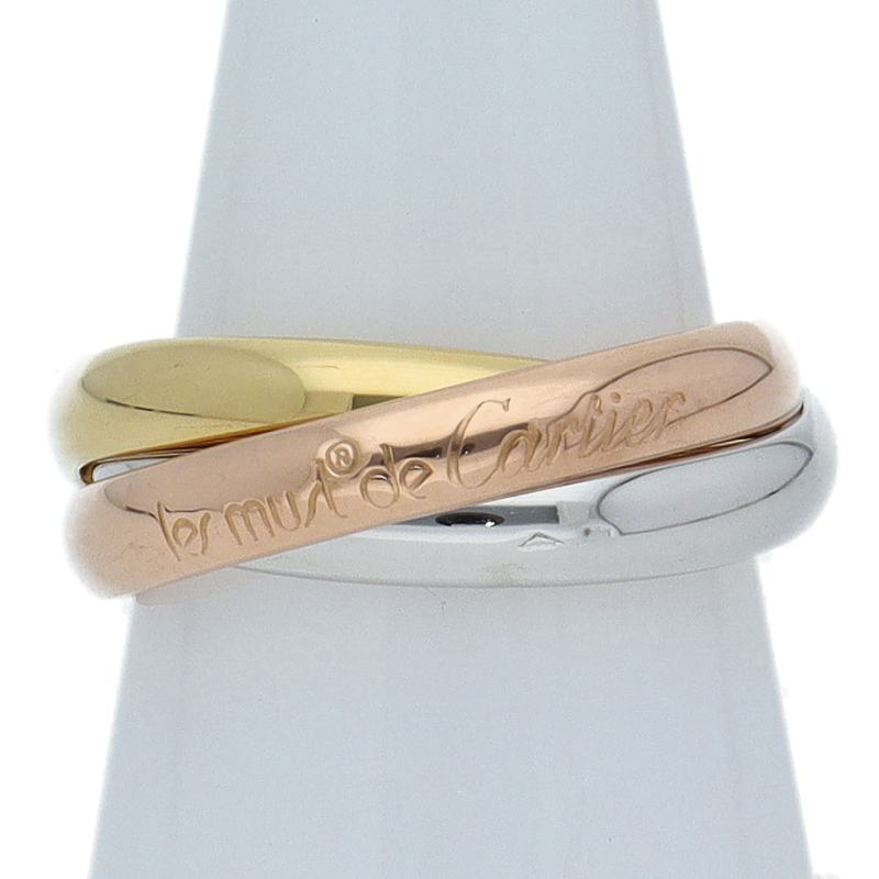 USED品。3カラー製。ピンクが愛、イエローが忠誠、ホワイトが友情を象徴するカルティエの人気のトリニティコレクションです。