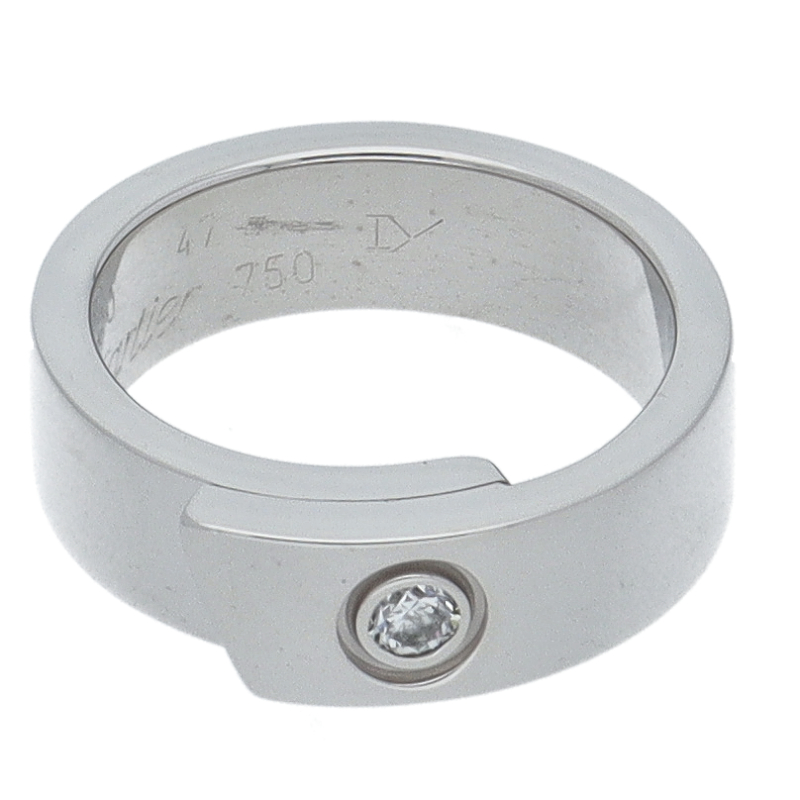 USED品。ホワイトゴールド製。1ポイントダイヤ。シンプルなデザインですのでファッションを選びません。厚みが有りますので存在感抜群です。