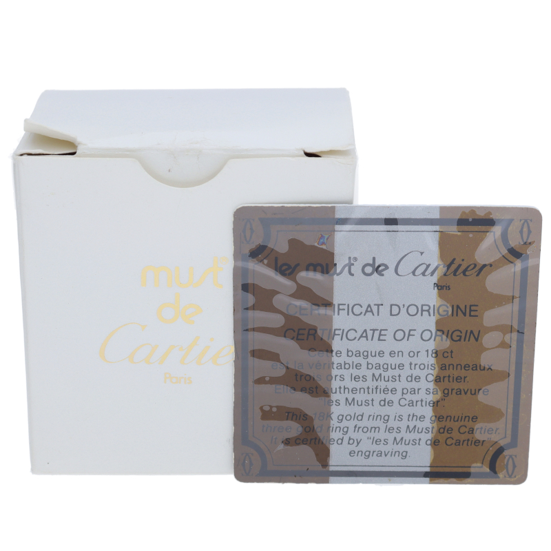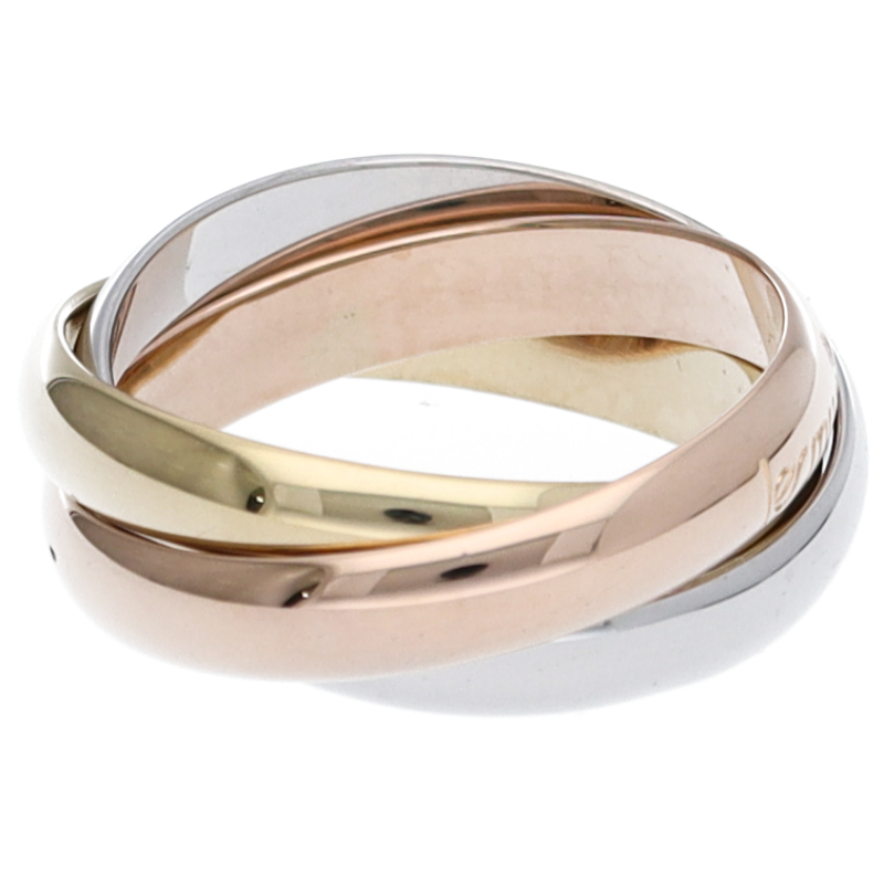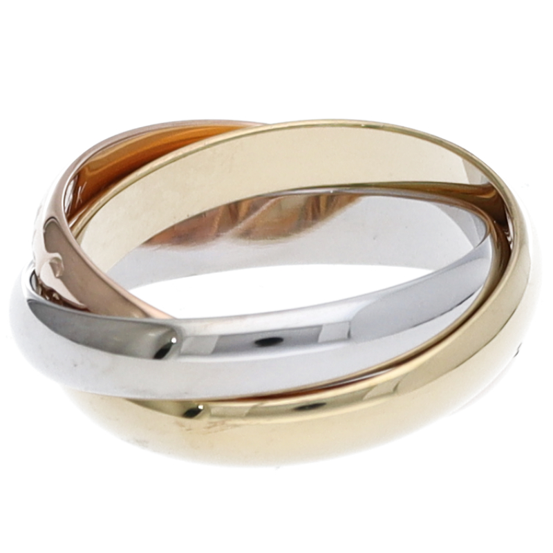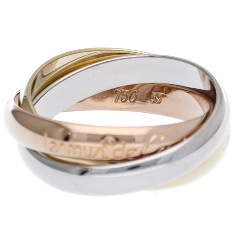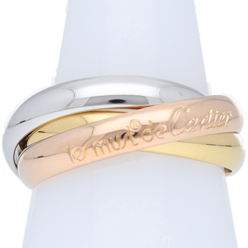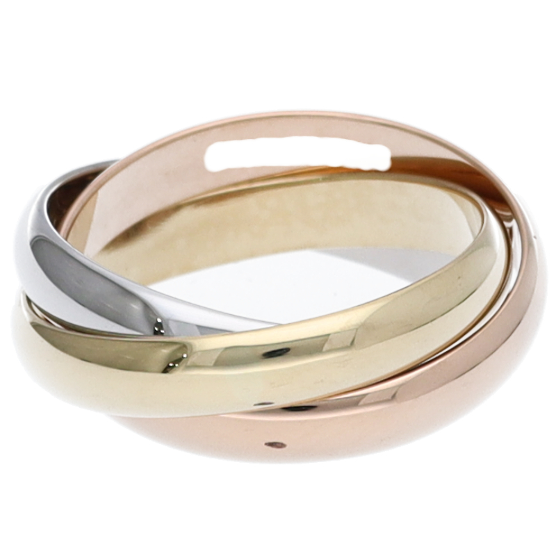 USED品。3カラー製。ピンクが愛、イエローが忠誠、ホワイトが友情を象徴するカルティエの人気のトリニティコレクションです。