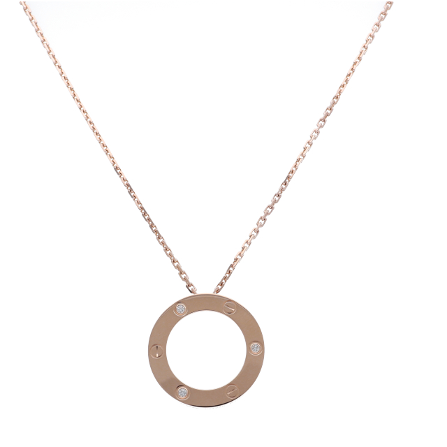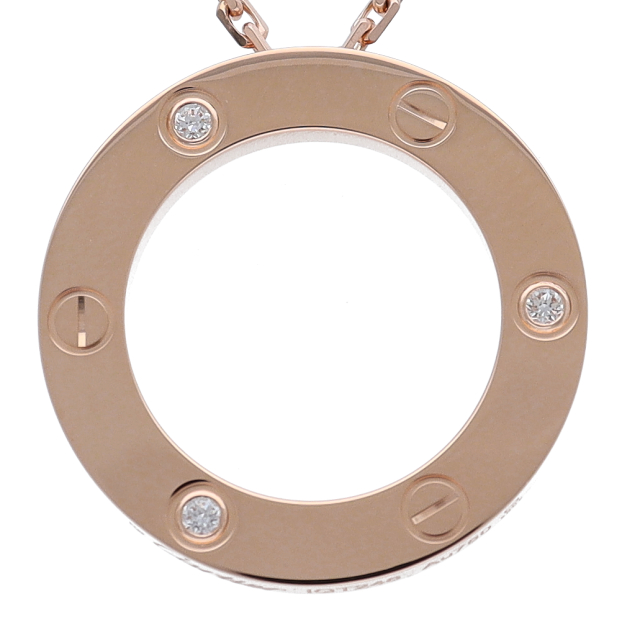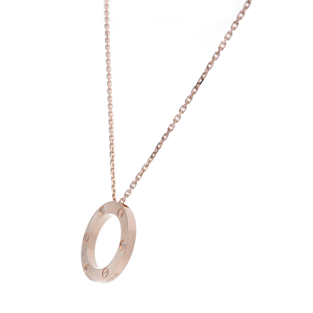 USED品。ピンクゴールド製。1970年代にニューヨークで生まれ、自由な愛の象徴となり、既成概念に囚われることのない情熱的な愛を封じ込めたLOVEジュエリー。
