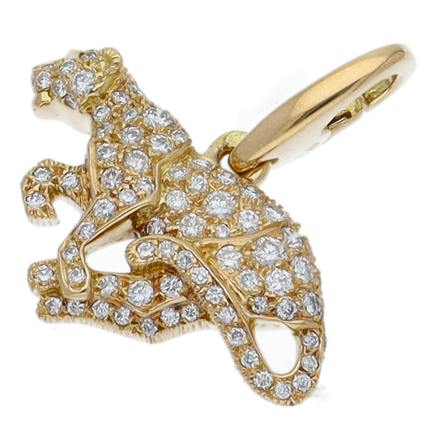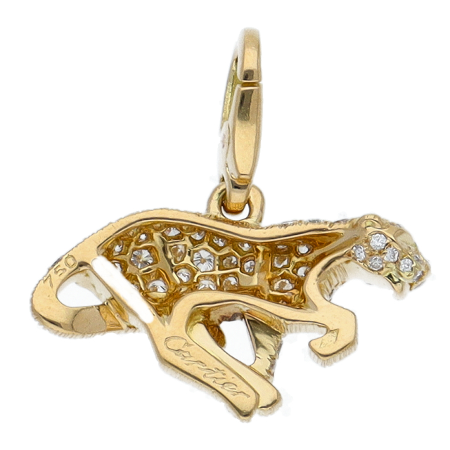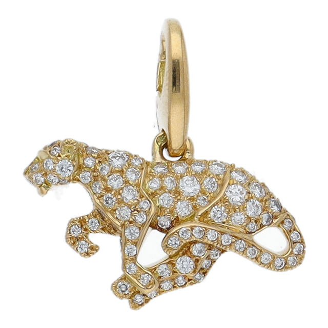 USED品。イエローゴールド製。躍動感のあるパンサーをイエローゴールドでデザインした品の有るカルティエのトップです。