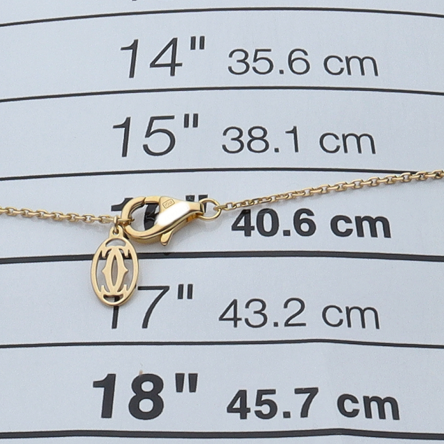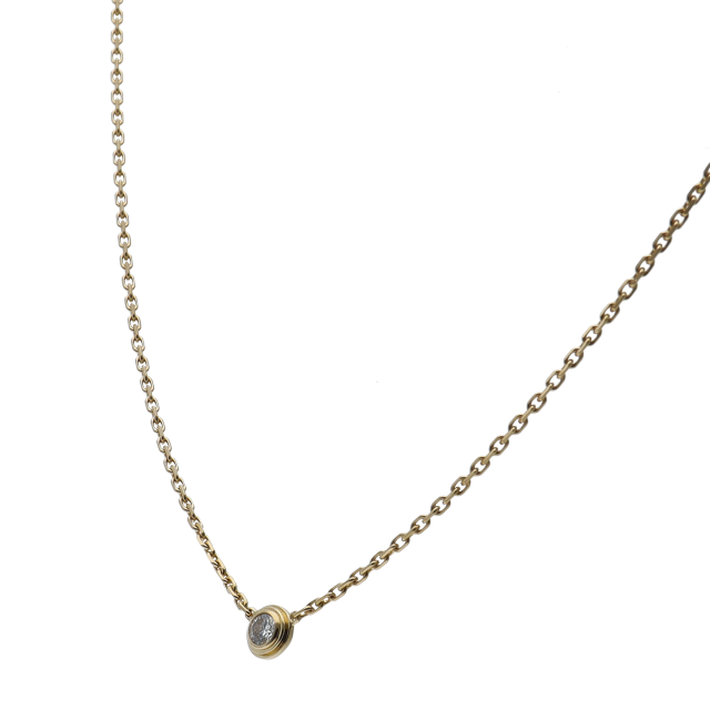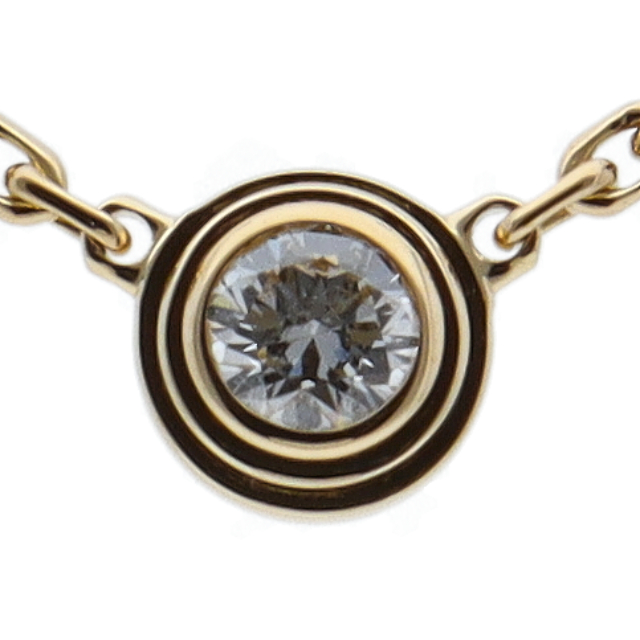 USED品。イエローゴールド製。世界中のセレブに愛される、カルティエのアイテム。現在は『ダムール ネックレス』に名称を変えております。ワンポイントでデザインされたダイヤが、エレガントな存在感を発揮します。