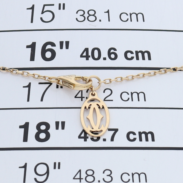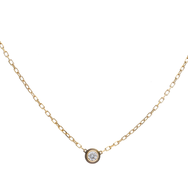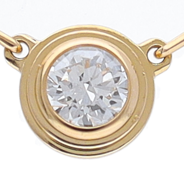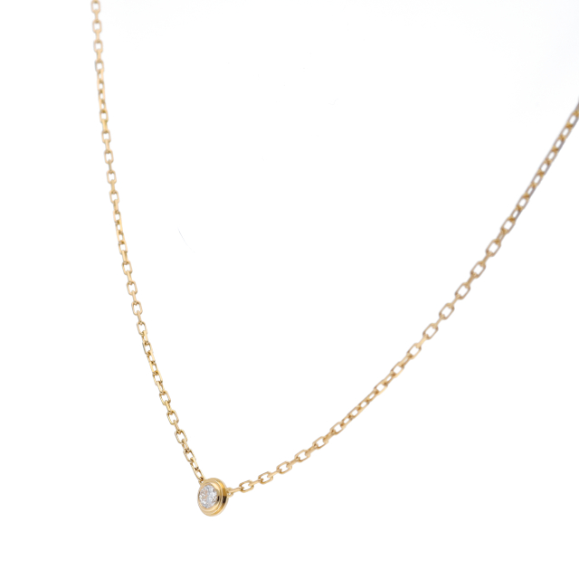 USED品。イエローゴールド製。世界中のセレブに愛される、カルティエのアイテム。現在は『ダムール ネックレス』に名称を変えております。ワンポイントでデザインされたダイヤが、エレガントな存在感を発揮します。